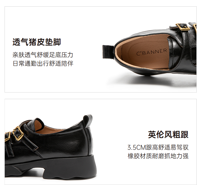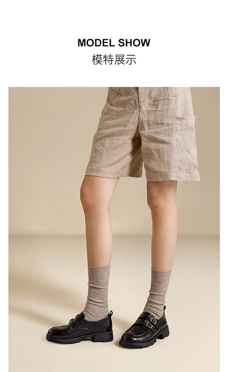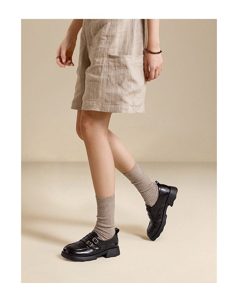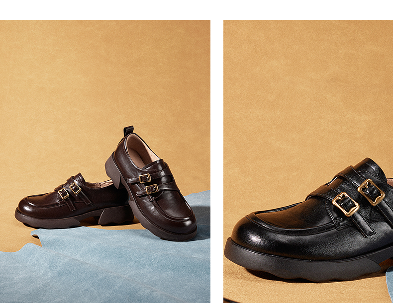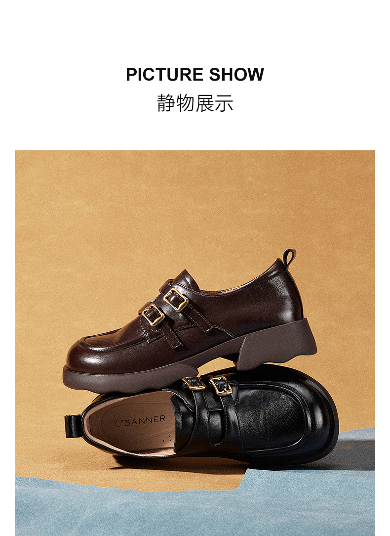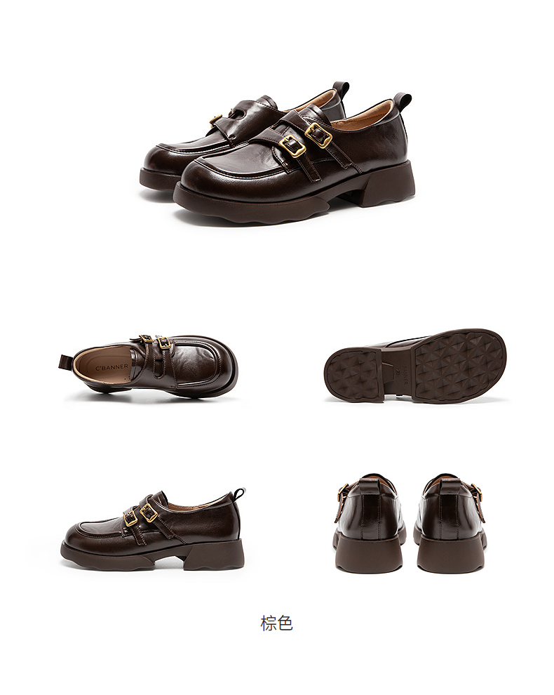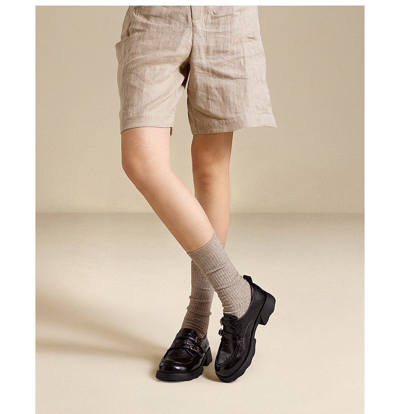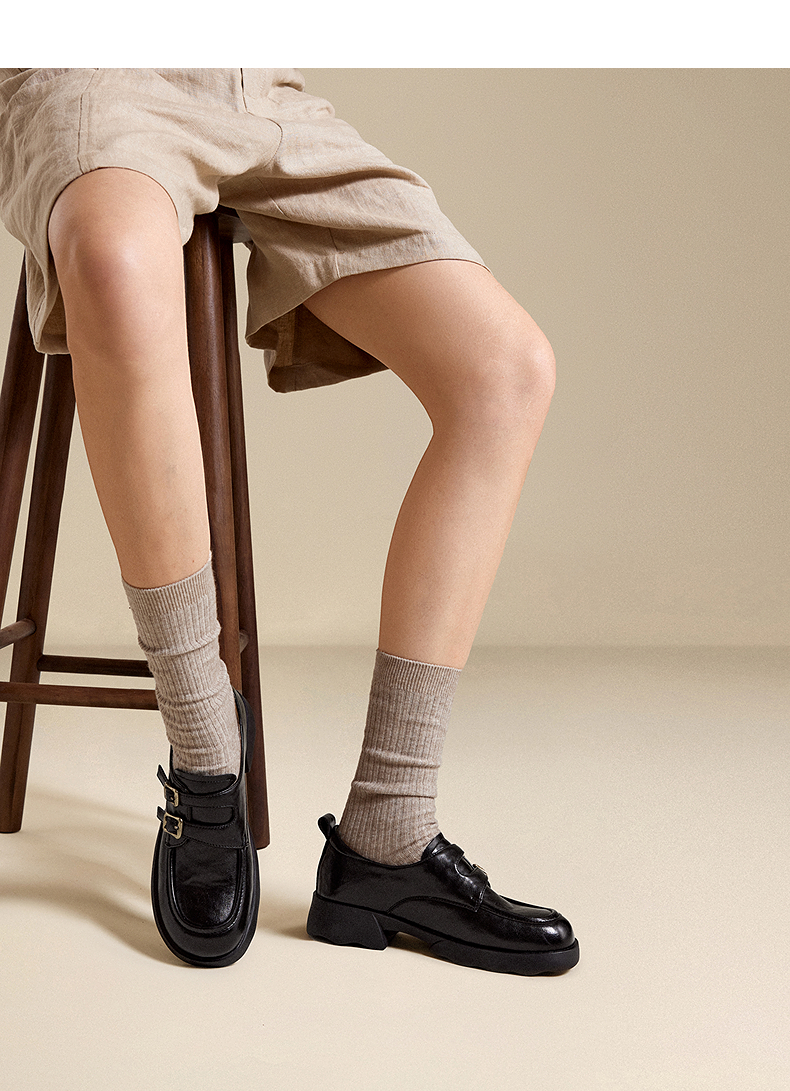 千百度26年新款厚底手抓皮乐福鞋女新款增高英伦风小皮鞋深口单鞋A26152808
