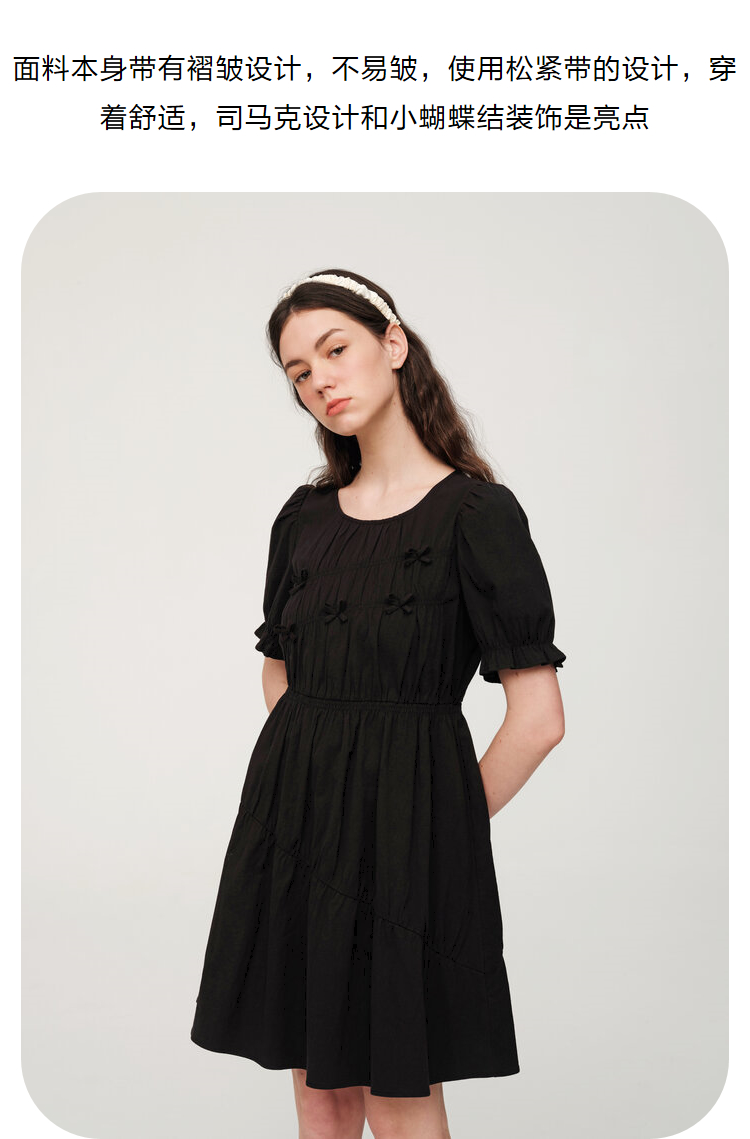 ELAND衣恋2022夏季新款法式初恋甜美泡泡袖少女短袖连衣裙EEOWC25N4M
