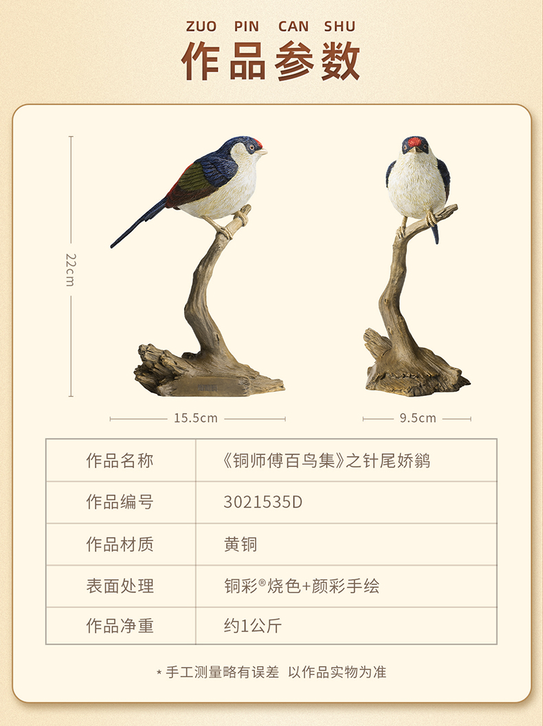 铜师傅《铜师傅百鸟集》之针尾娇鹟 客厅桌面铜摆件 家居工艺品