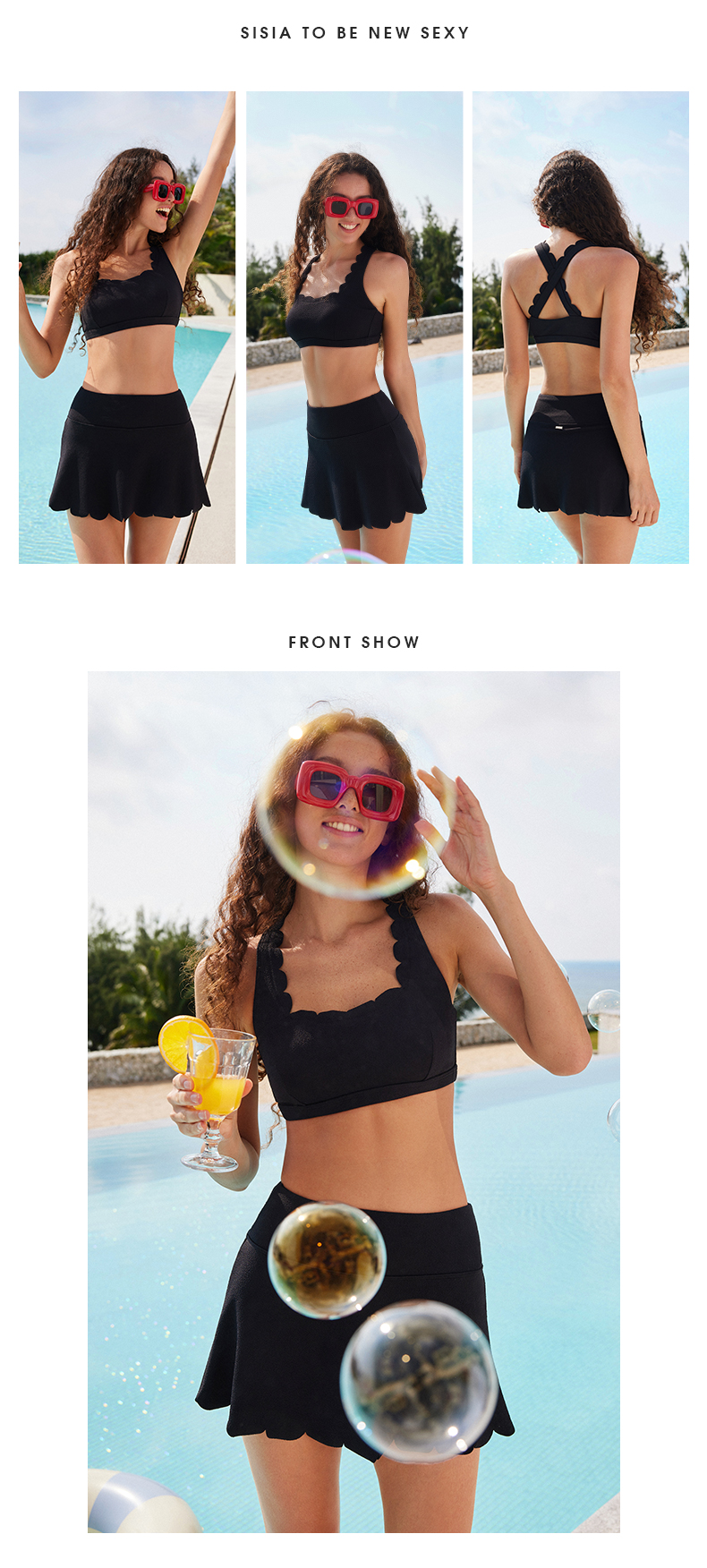 sisia2023新款泳衣女性感显瘦甜美时尚海岛度假温泉分体裙式泳装