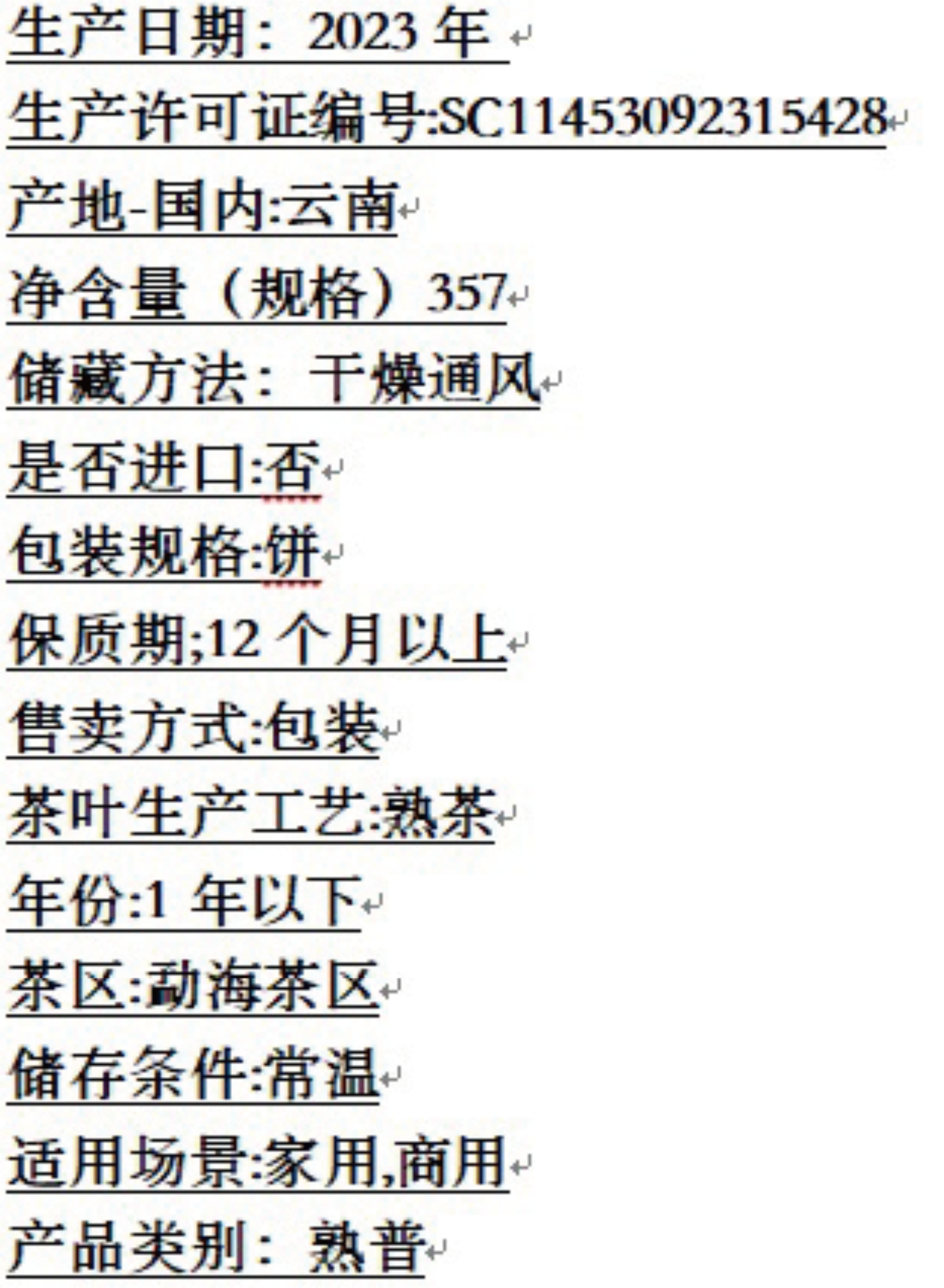 糯香普洱熟茶357克标准饼加袋子