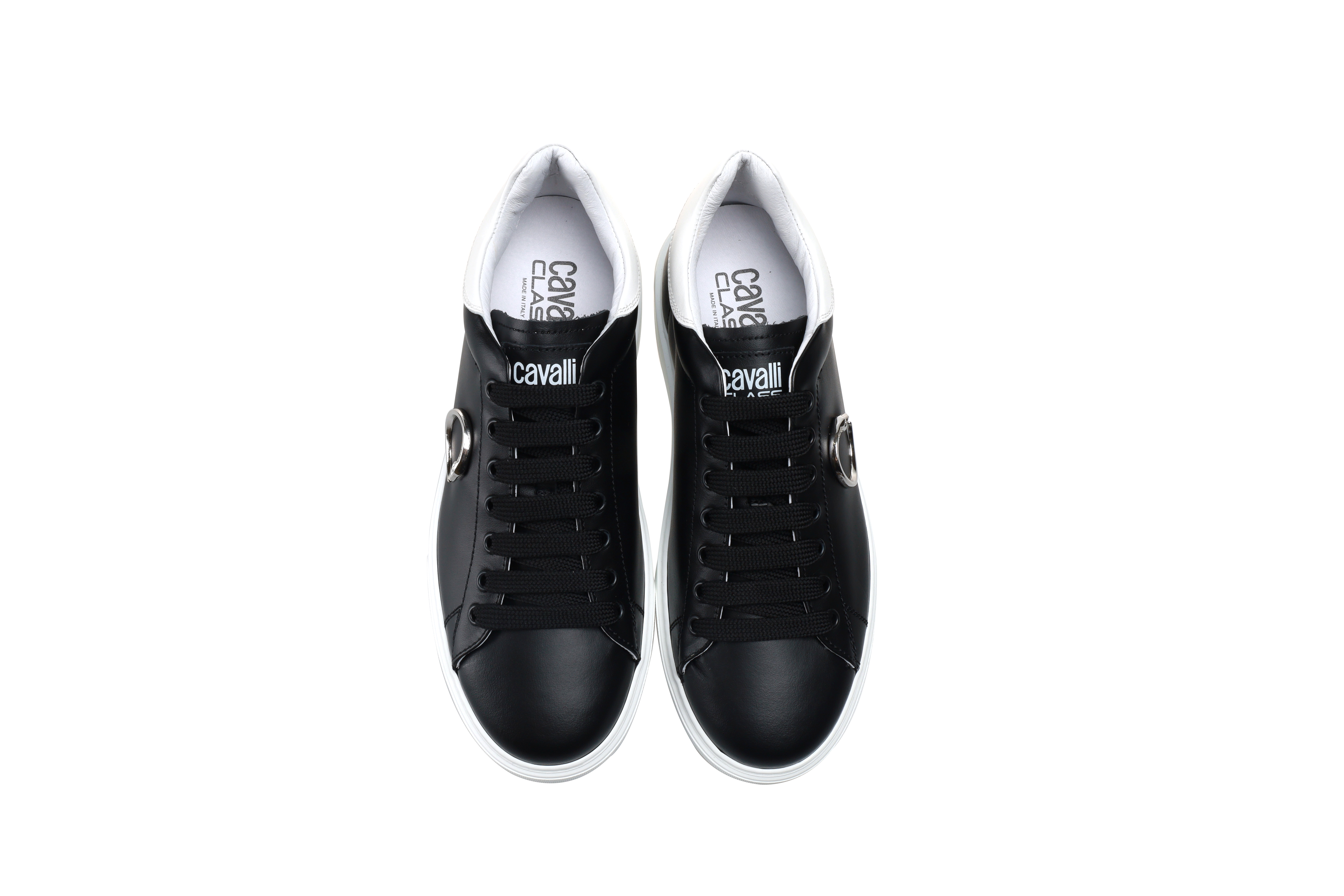 豪麟名鞋奥莱ROBERTO CAVALLI男鞋牛皮革休闲鞋RC21324X黑色 原价4660元