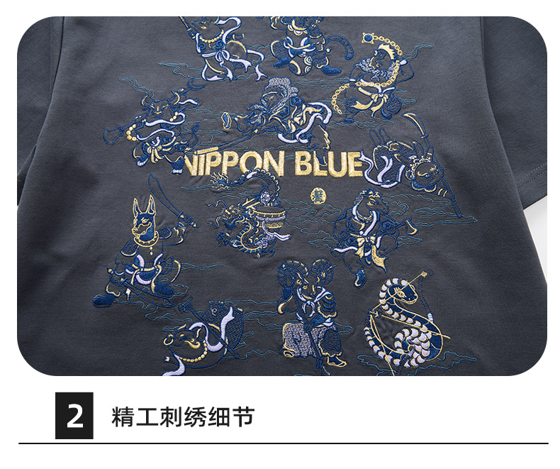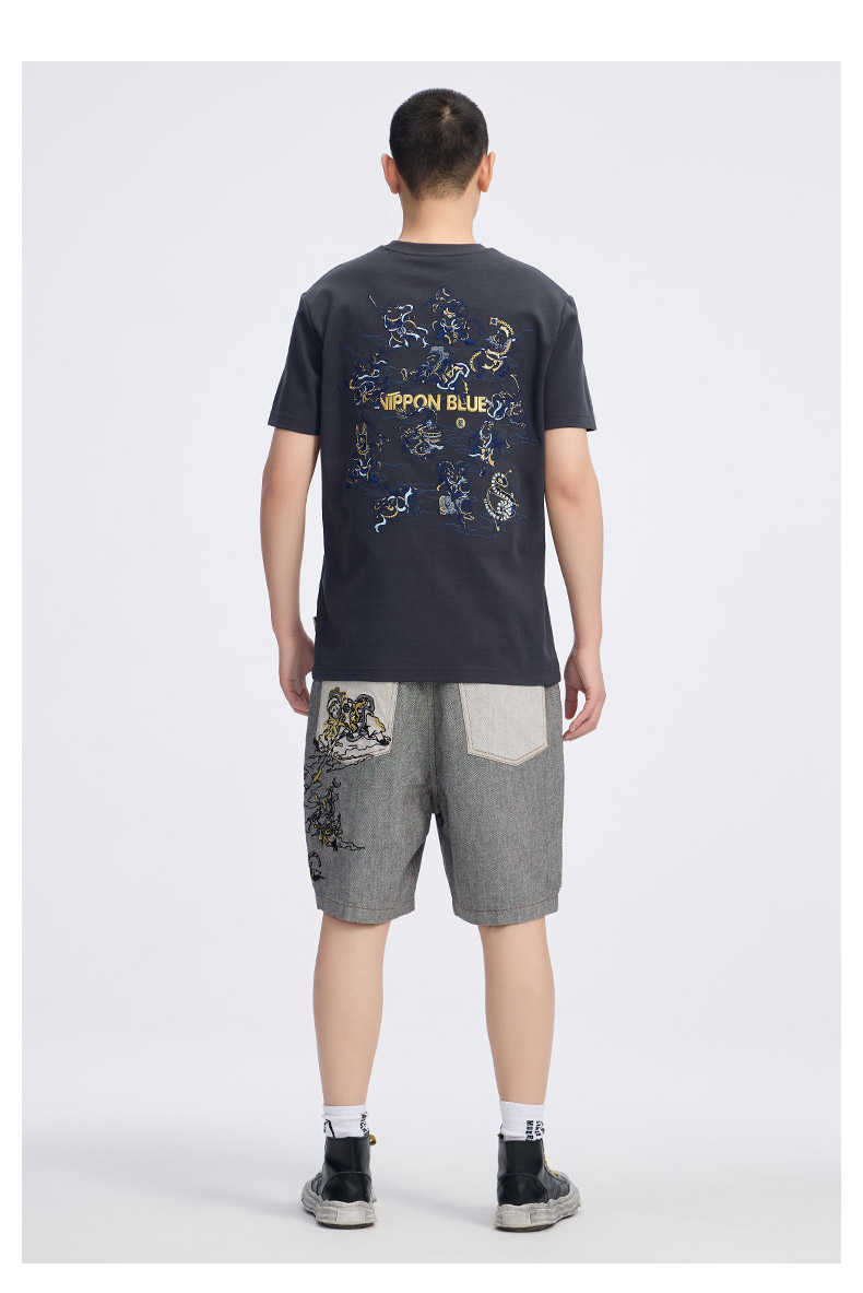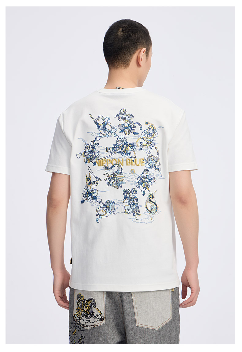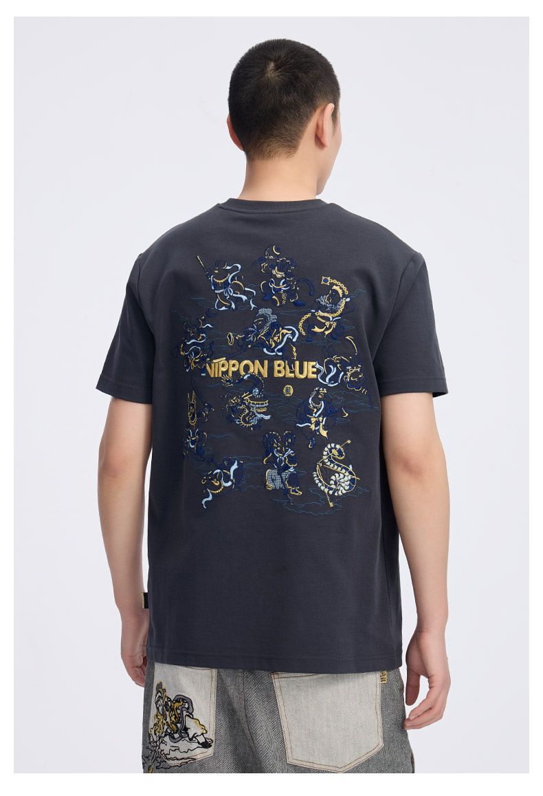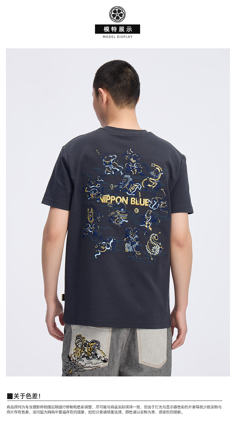 ONIARAI/鬼洗25春夏新品泥棒蓝十二神位绣花短袖男式T恤 25NOB32