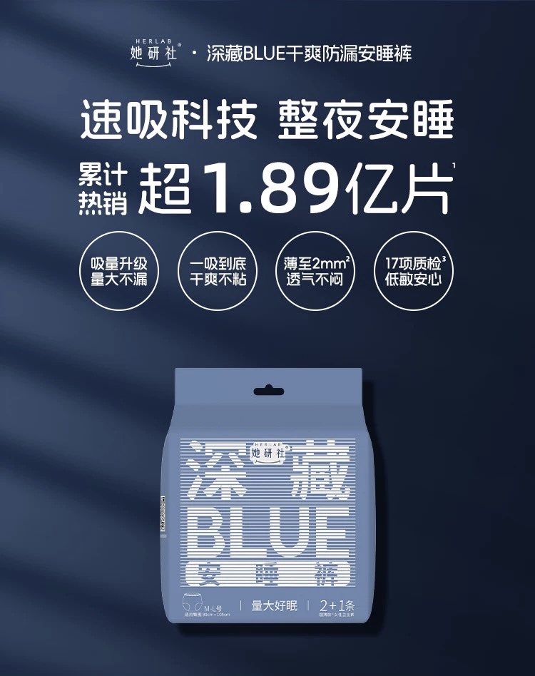 (M-L)她研社深藏BLUE安睡裤型卫生巾量大防漏3条装