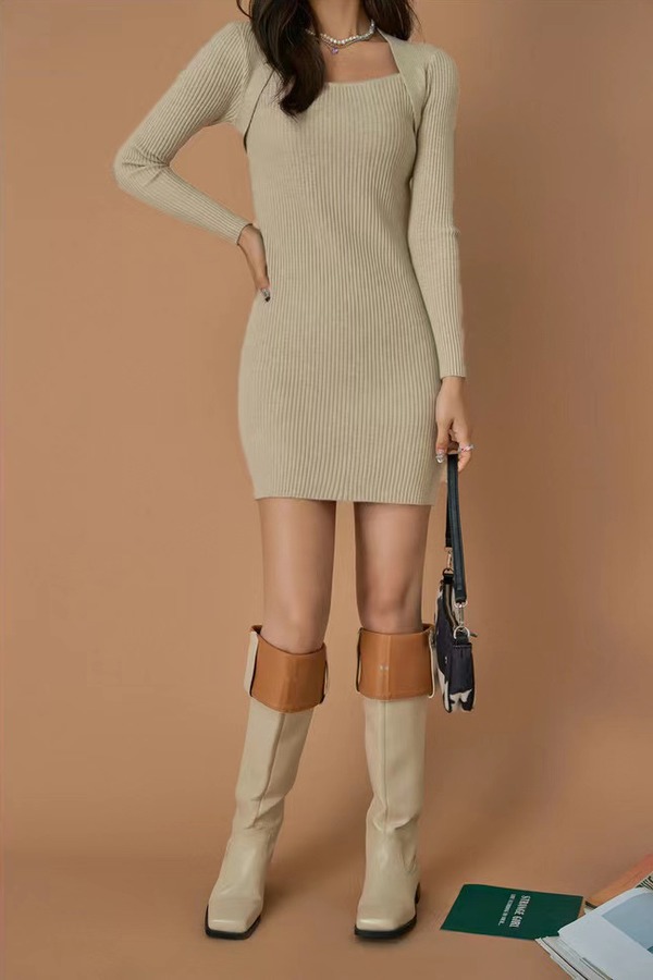 Other Mix 气质方领修身包臀针织连衣裙 14718