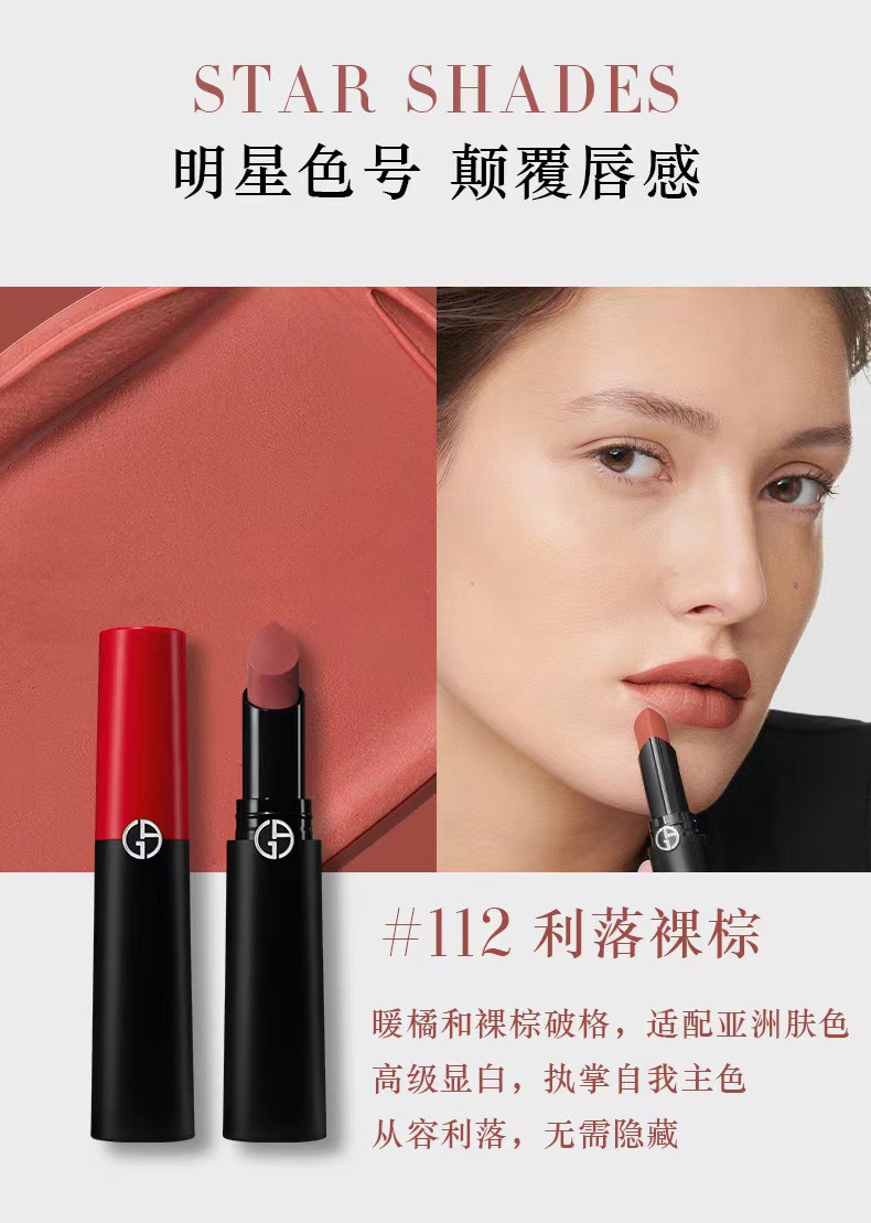 阿玛尼全新哑雾红黑管唇膏哑光显白口红裸棕色112