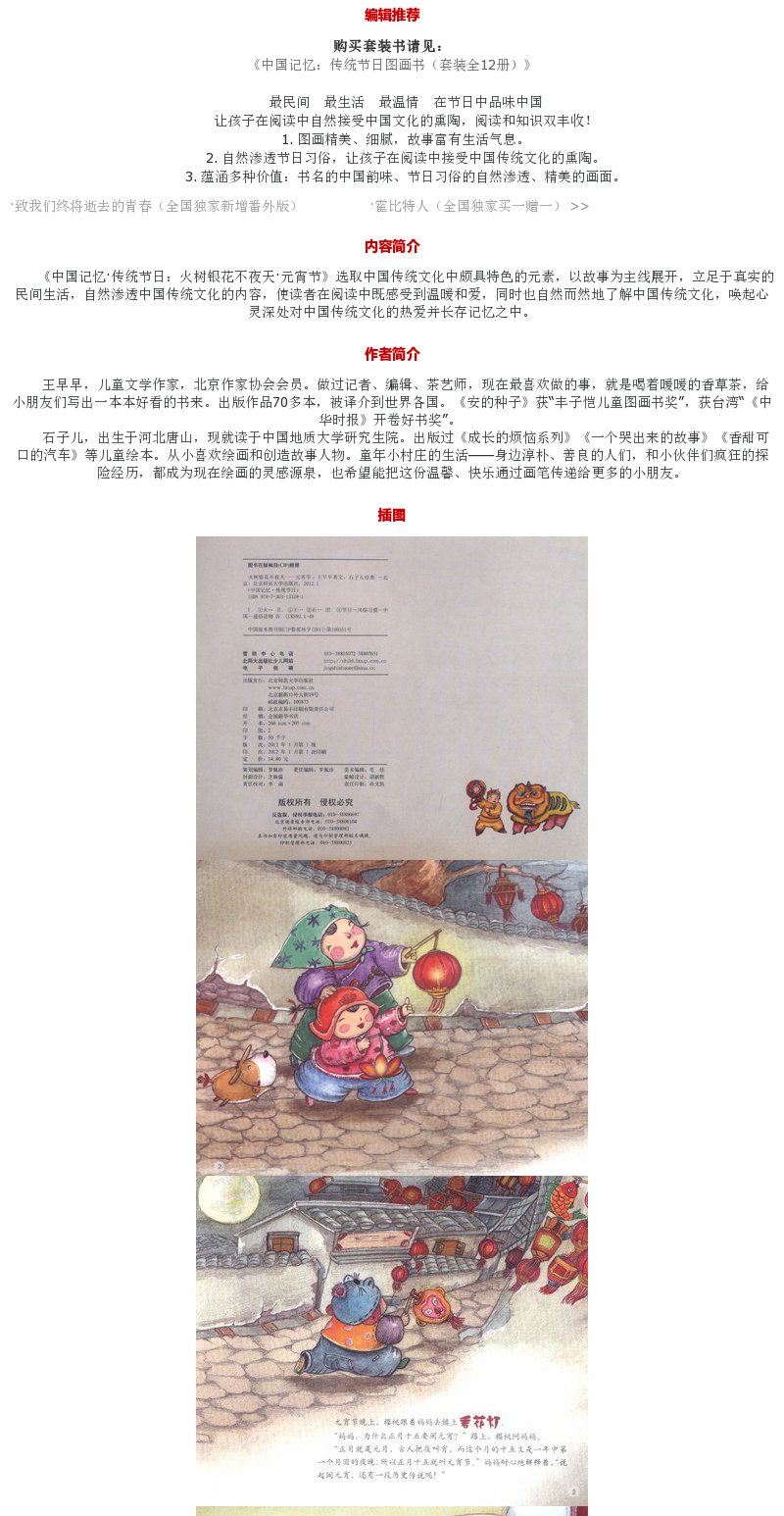 [3-6岁]中国记忆 传统节日图画书 《火树银花不夜天 元宵节》9787303133291 北京师范大学出版社 正版书籍