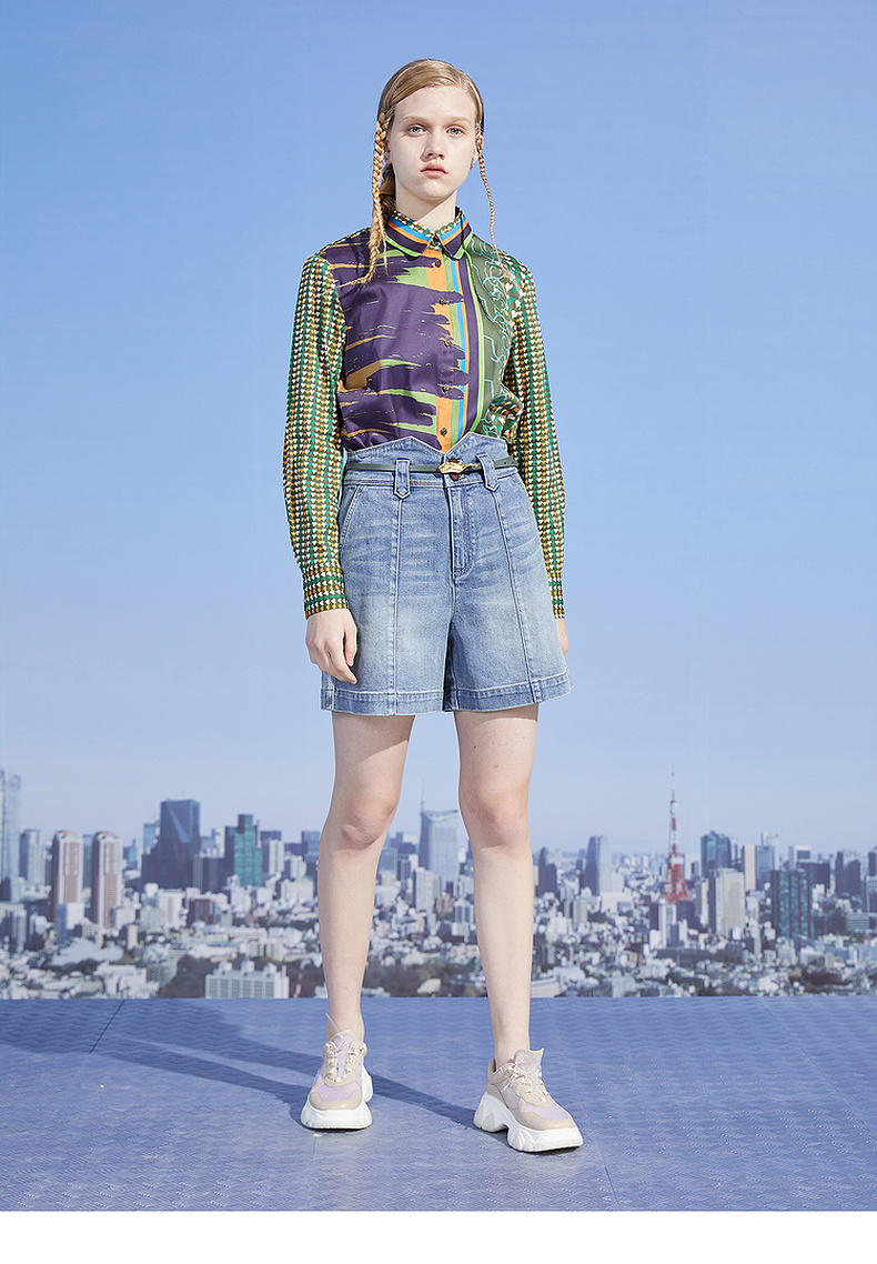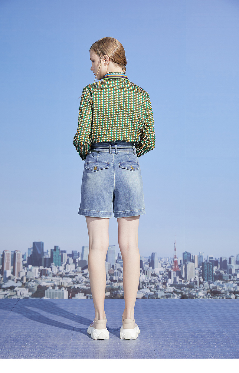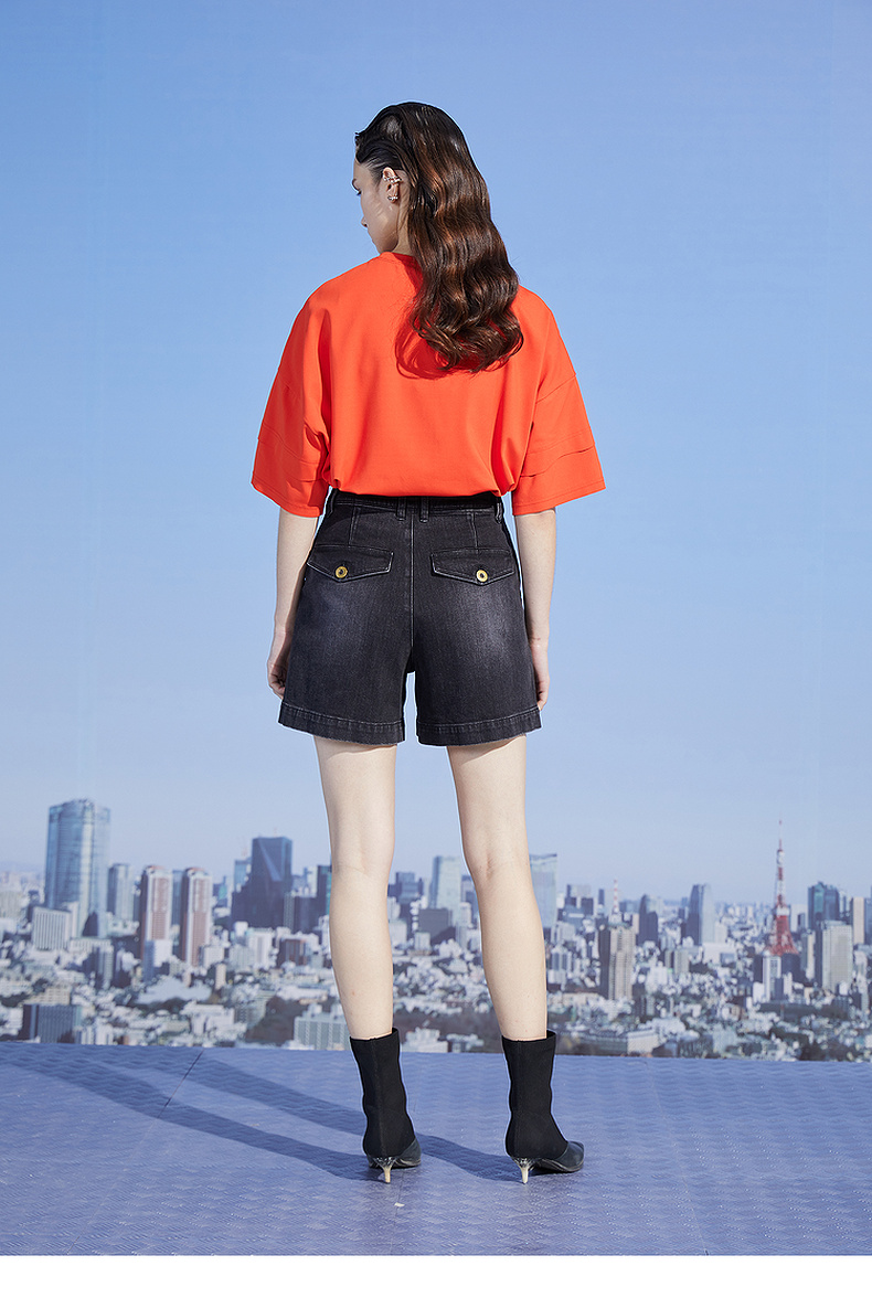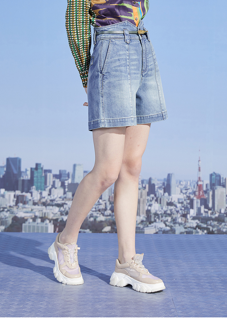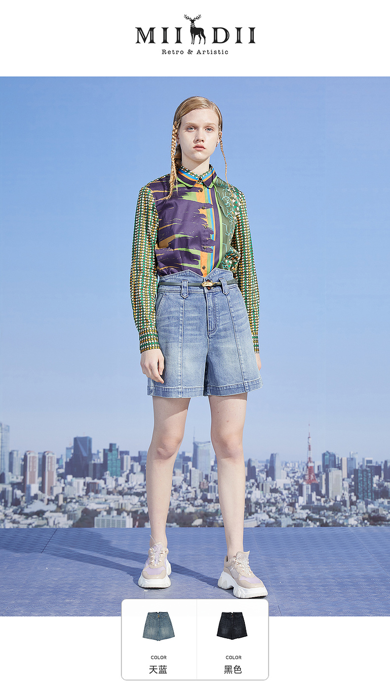 谜底2022夏季新款时尚减龄洗水磨白A型牛仔新疆棉短裤女225MK6017
