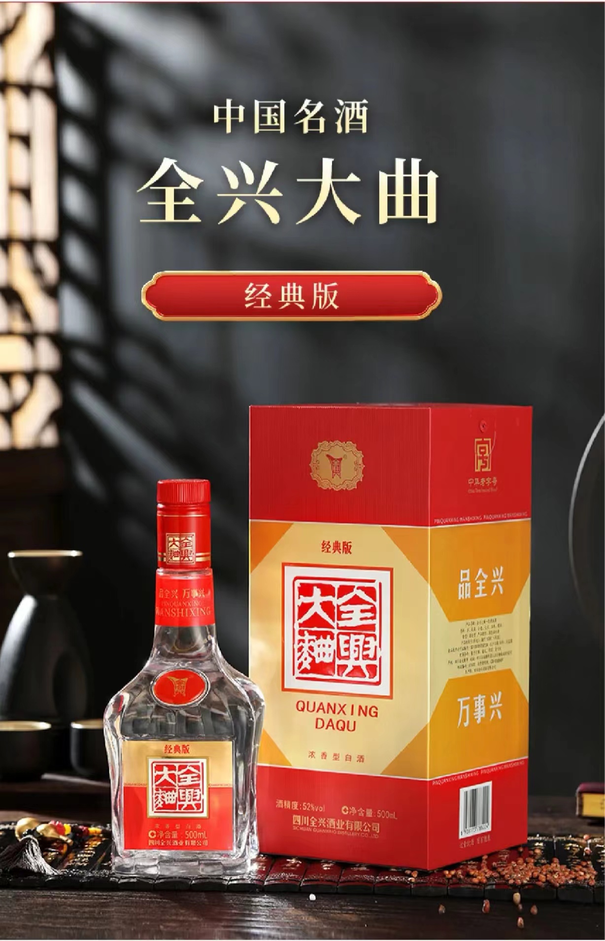 【买一送一】全兴大曲·经典版-浓香型52度纯粮白酒500ml*1瓶【直选好酒-包邮】