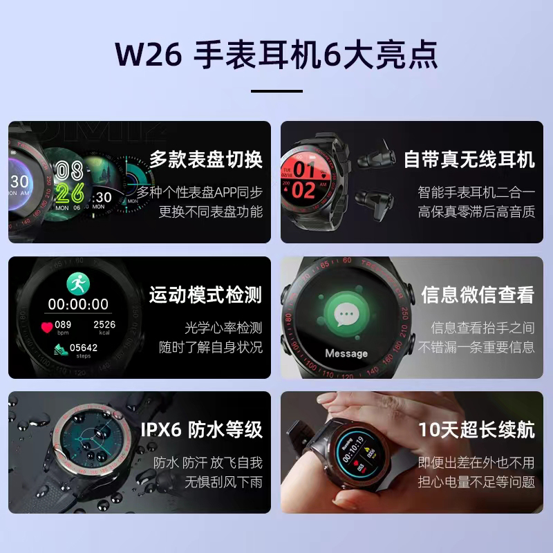 Wearbuds W26 智能穿戴手表真无线TWS耳机二合一防水触控手表