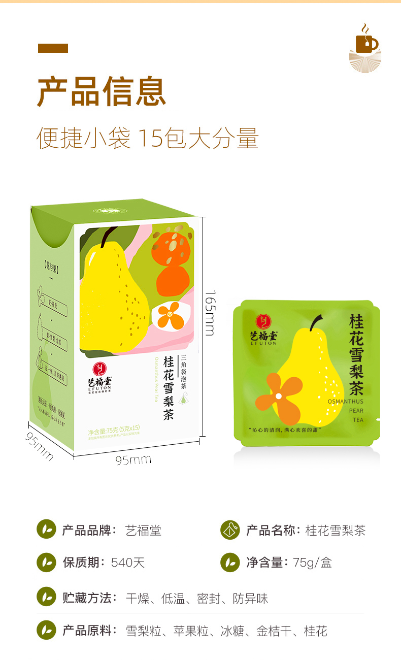 【优选】艺福堂 桂花雪梨茶 秋冬必备 花茶水果组合茶 75g/盒