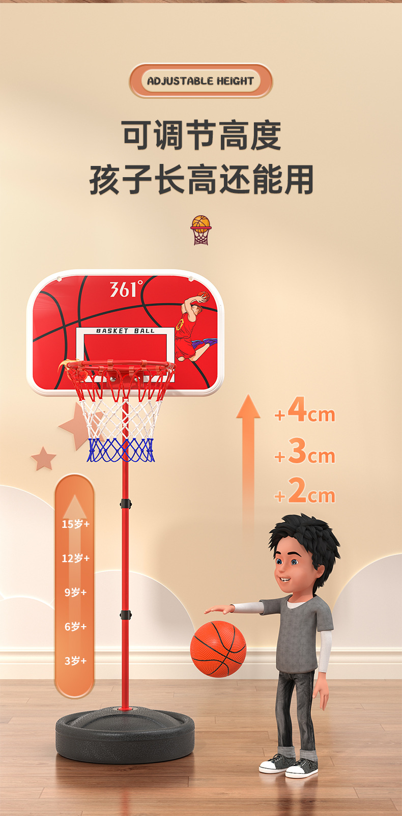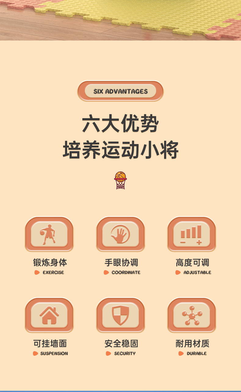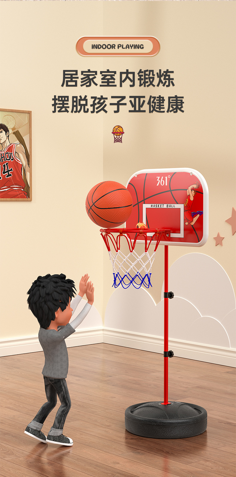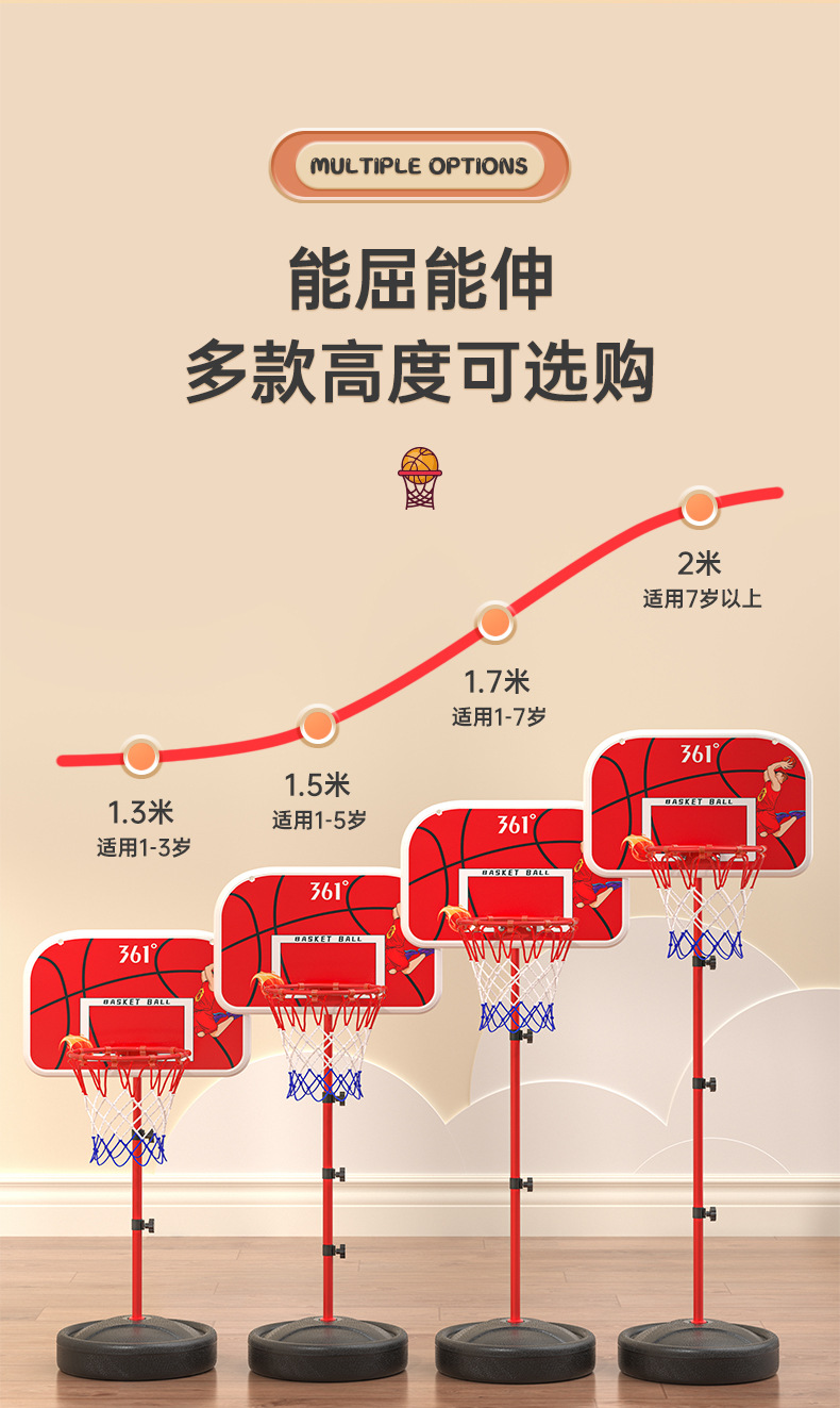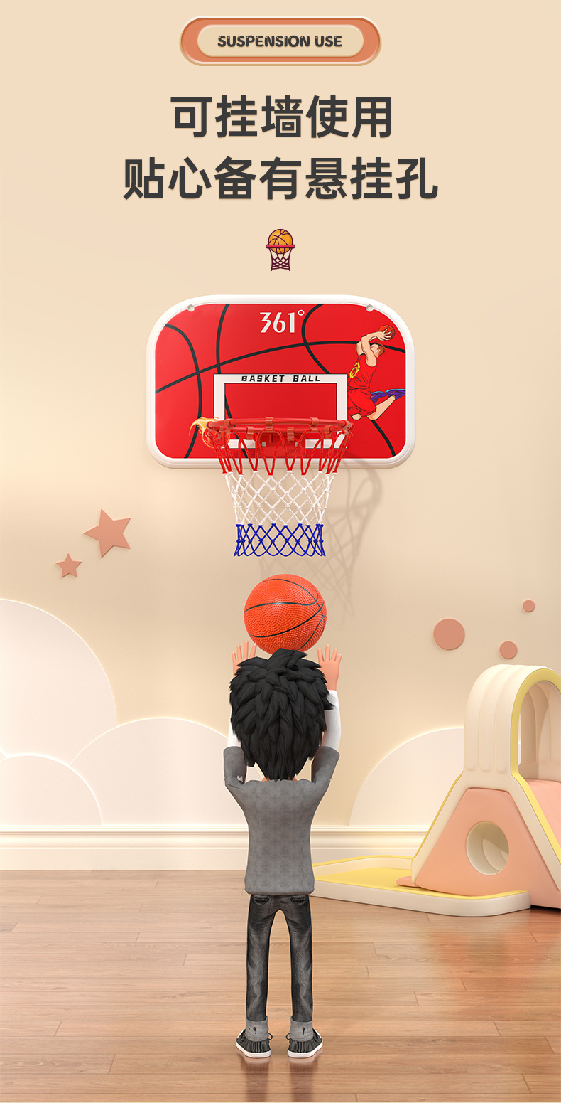 361°儿童篮球架壁挂式篮球框投篮圈室内外可扣篮升降6-12岁