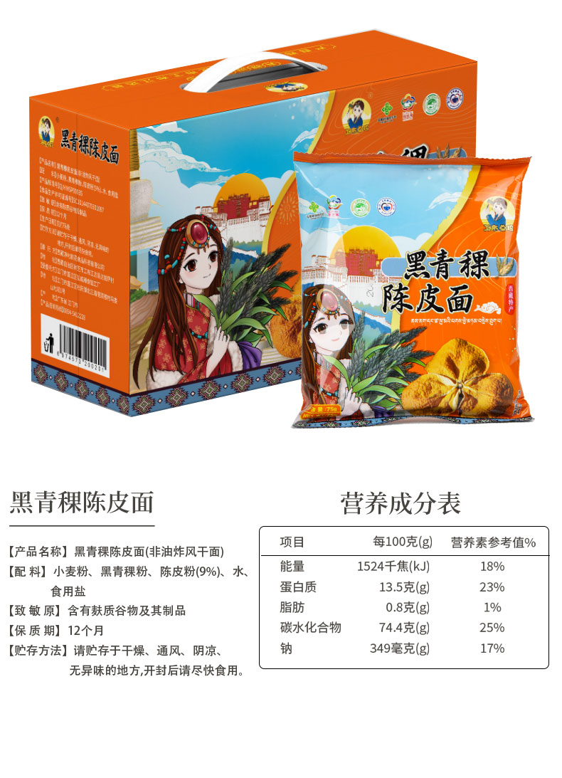 【西藏帮扶】西藏黑青稞陈皮面 900g/盒(75gx12袋)