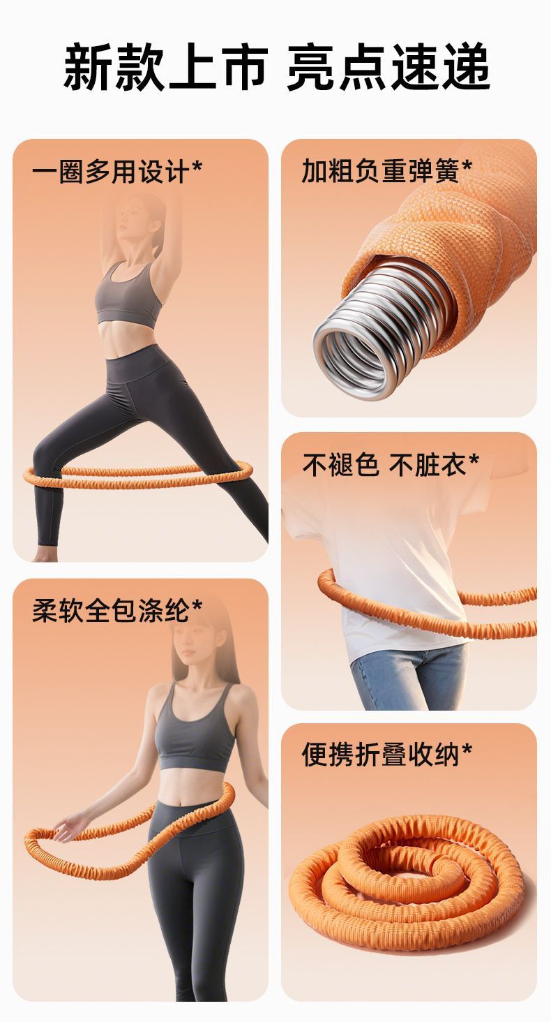 致佳涤纶静音软体呼啦圈全新升级软弹簧加重不伤衣全包裹运动健身