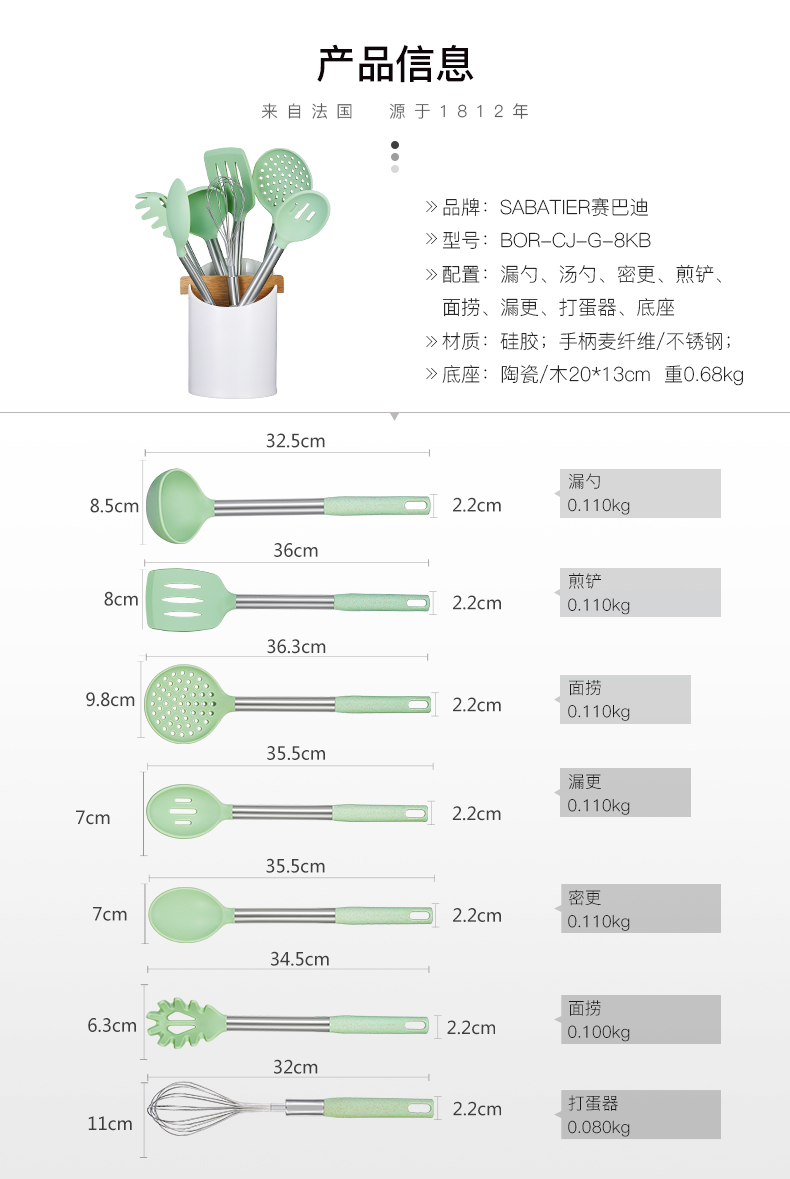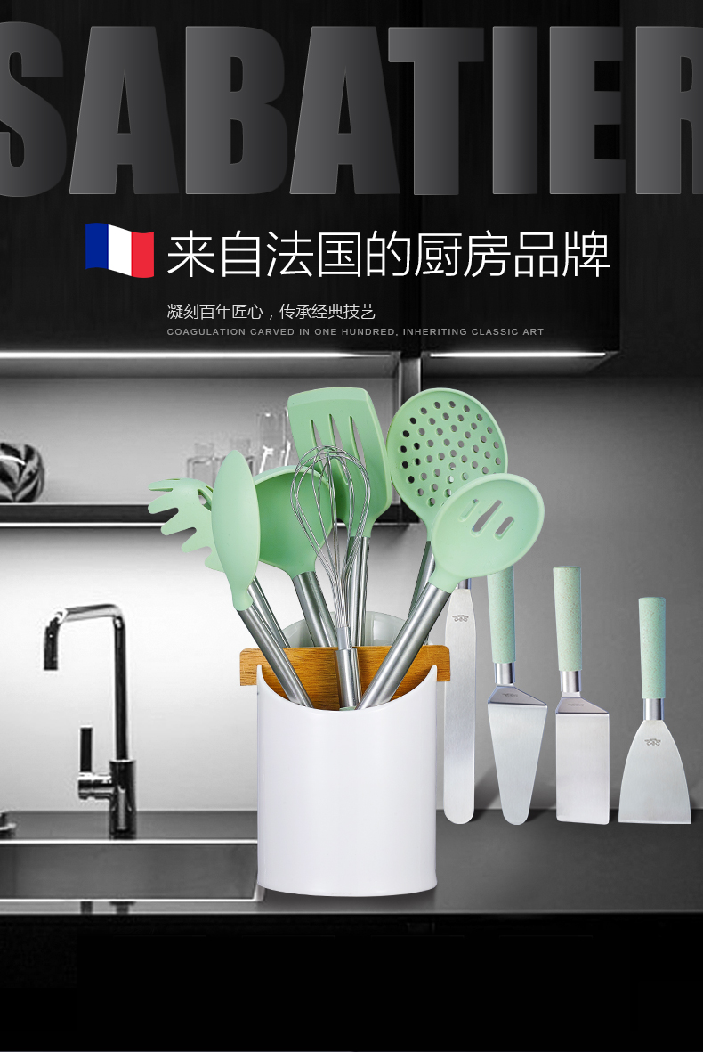法国赛巴迪波尔多不粘锅家用硅胶铲勺隔热耐高温轻便厨具八件套
