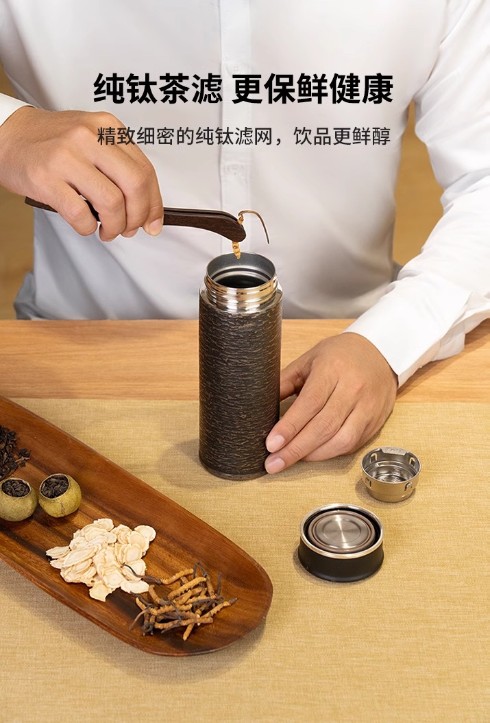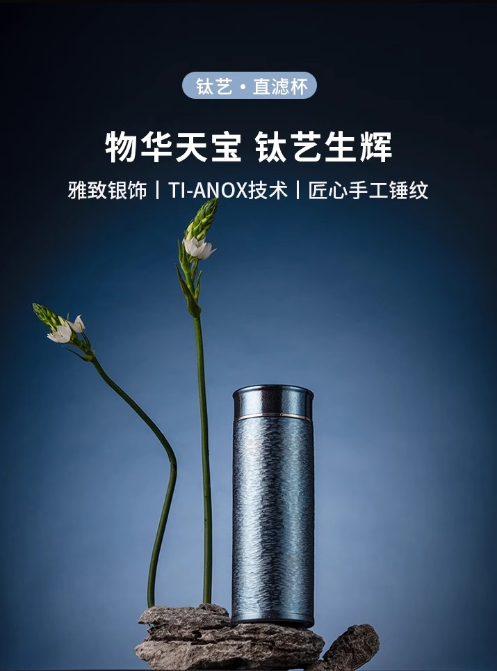 TAIC太可钛艺直滤杯纯钛保温杯手工锤纹送礼轻奢高端商务礼盒装