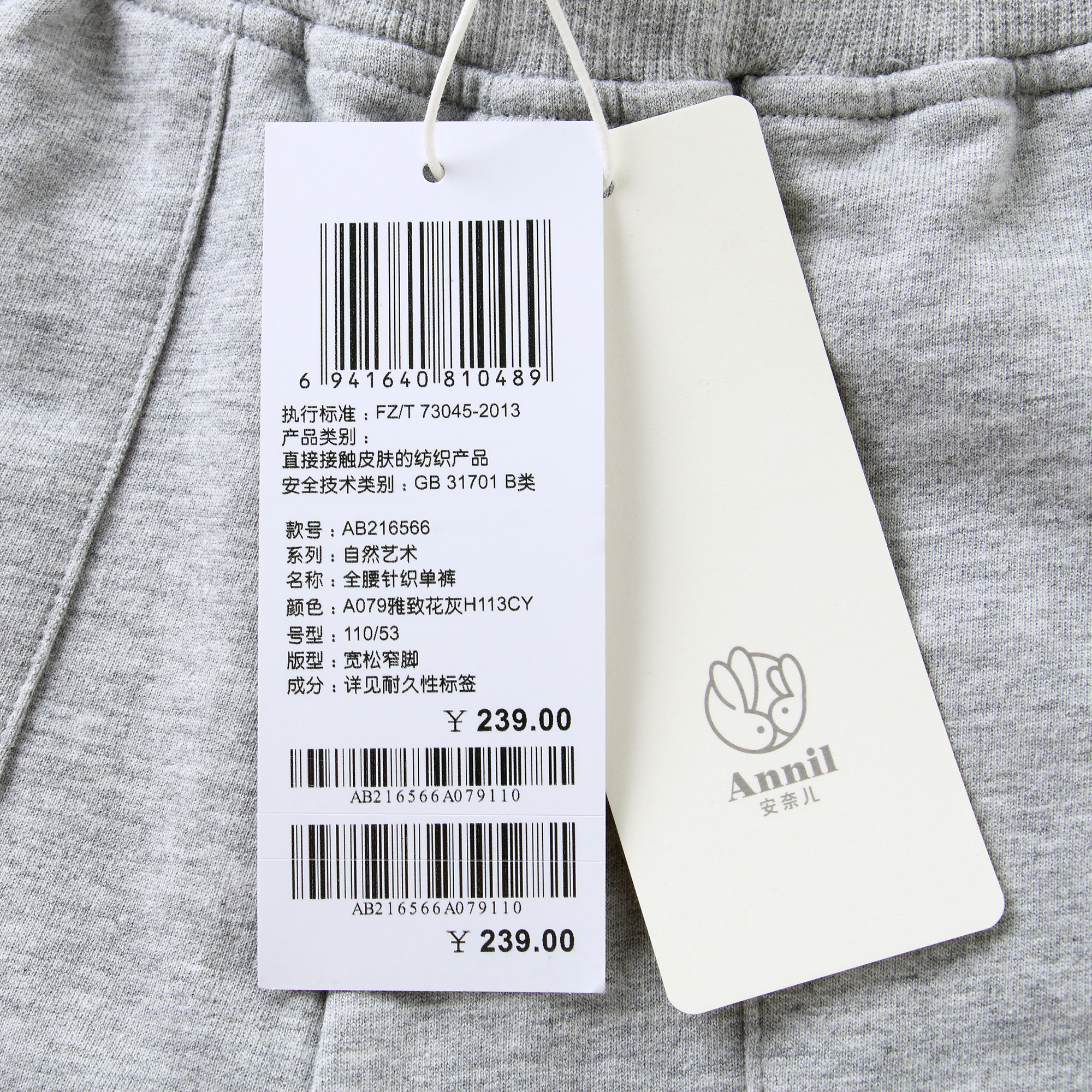 安奈儿男童全腰针织单裤ab216566