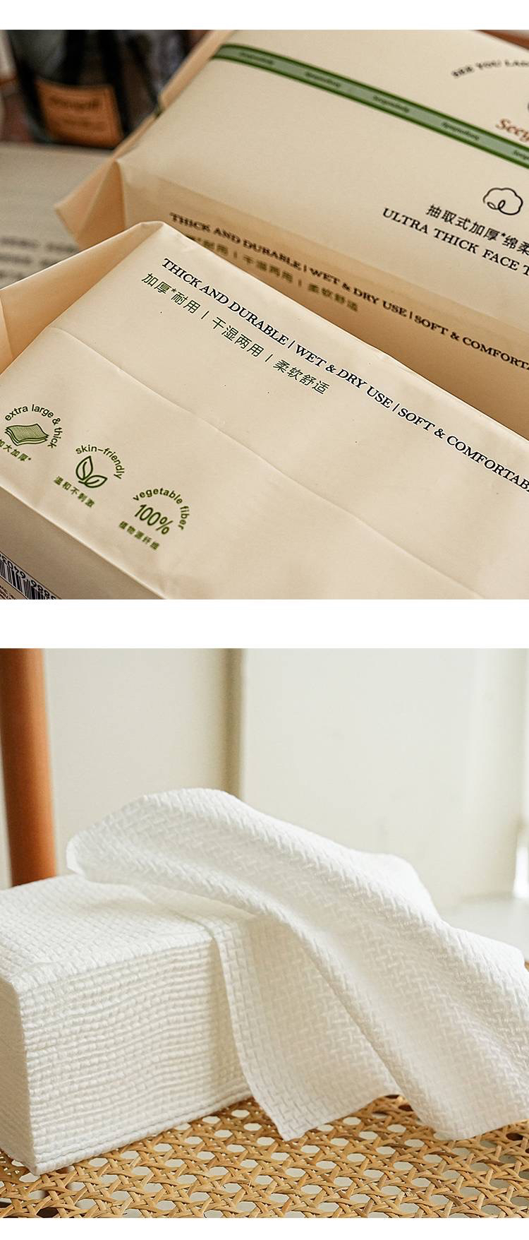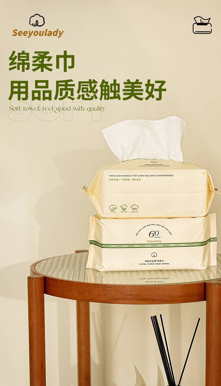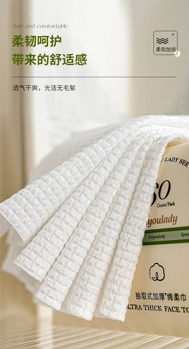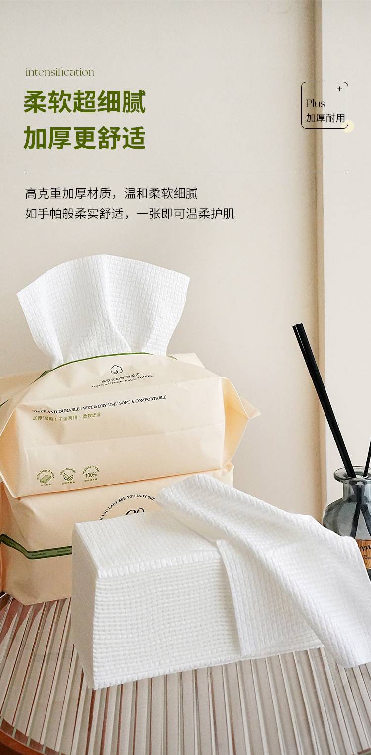 国际一线代工 一次性抽取式加厚干湿两用绵柔洗脸巾(1组3包)