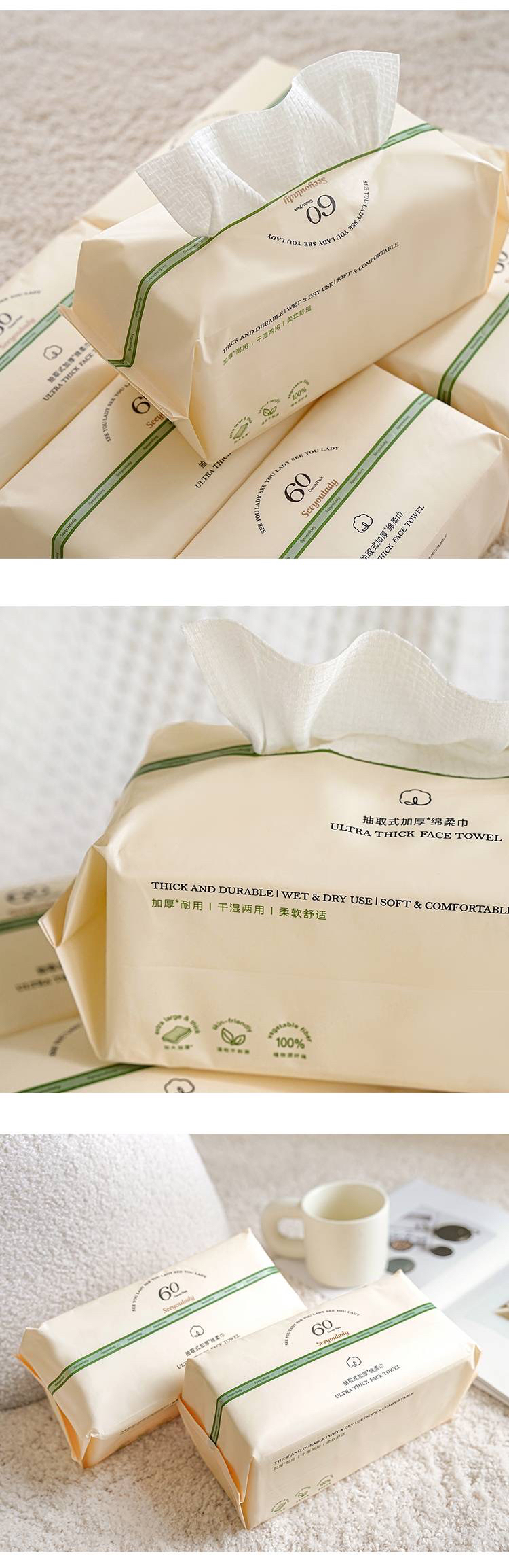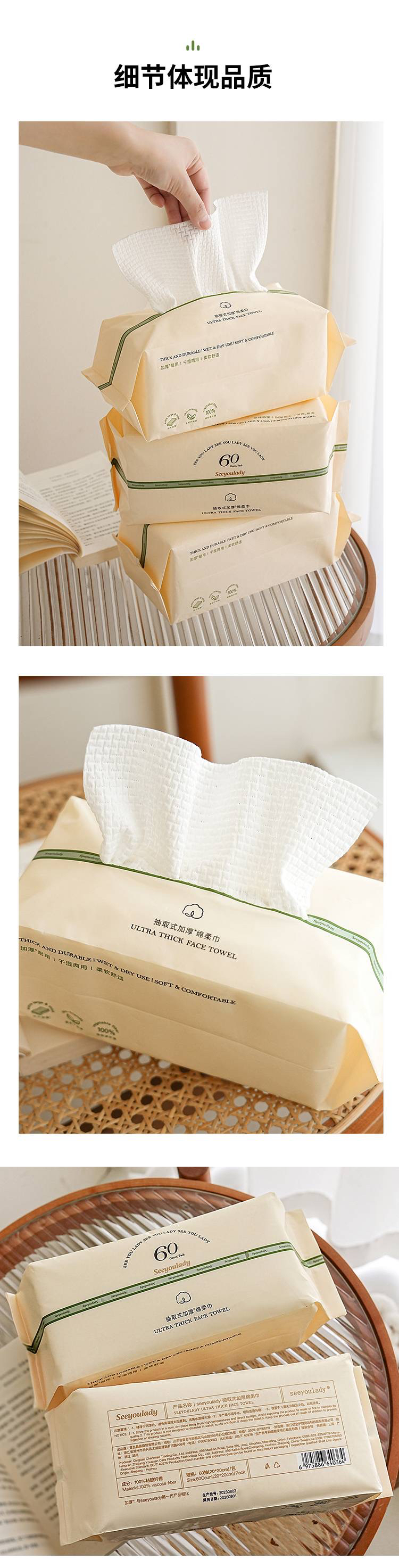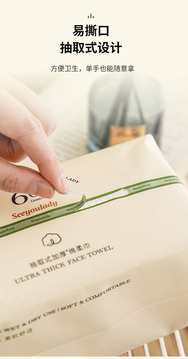 国际一线代工 一次性抽取式加厚干湿两用绵柔洗脸巾(1组3包)