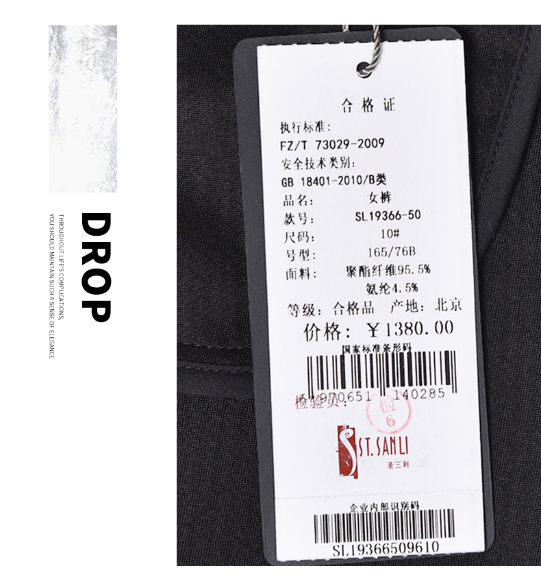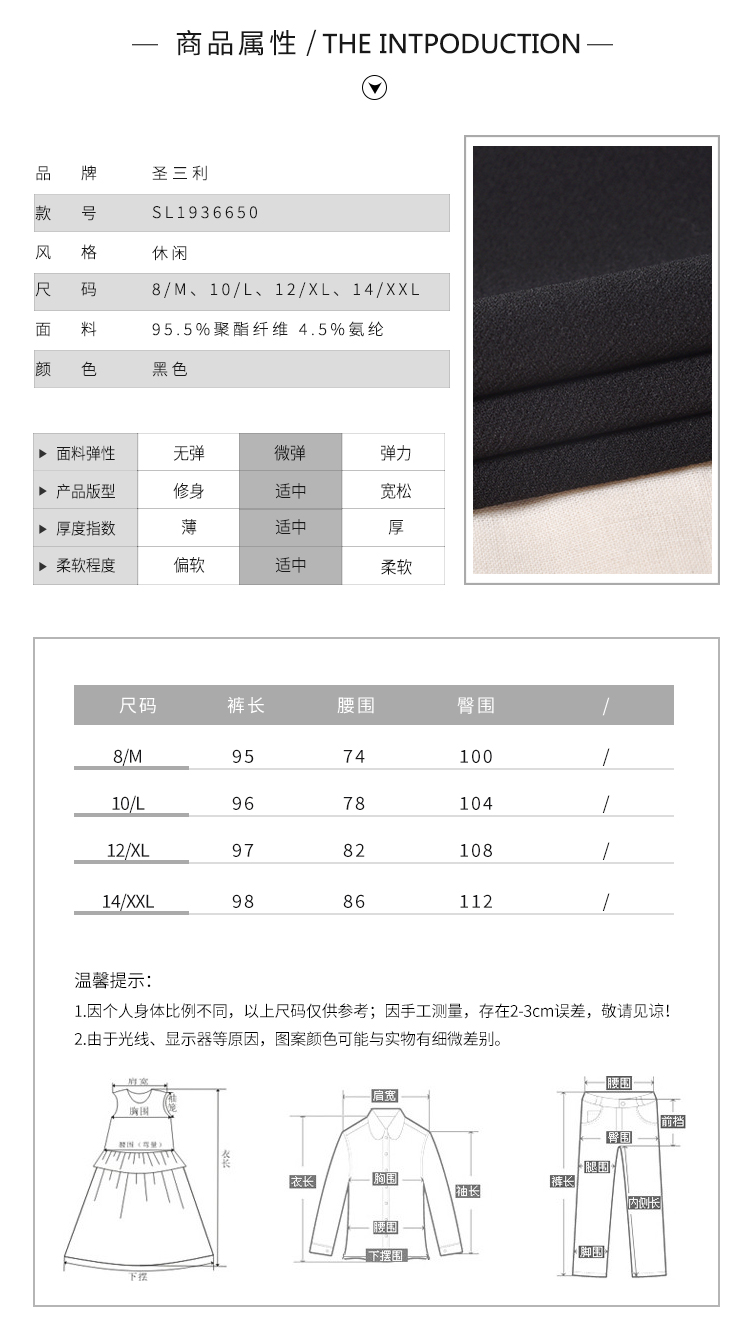 圣三利女装秋季休闲款纯色宽腿裤,女裤SL1936650