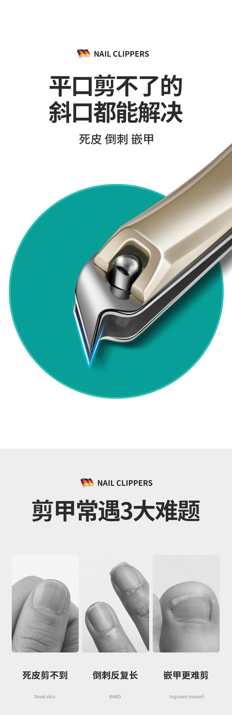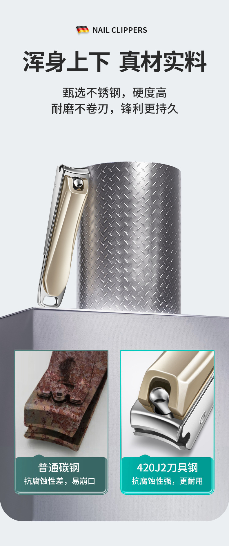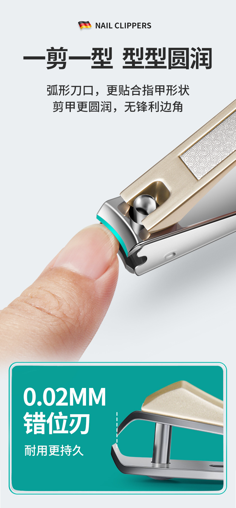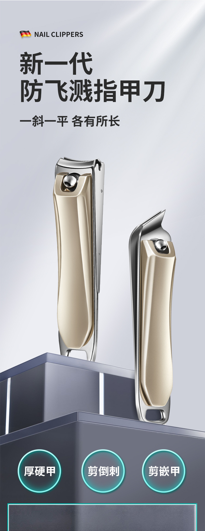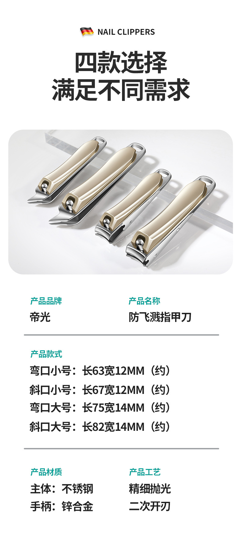 「数款可选」阳江帝光指甲刀 居家日用不锈钢指甲剪大号斜口香槟色修剪指甲钳