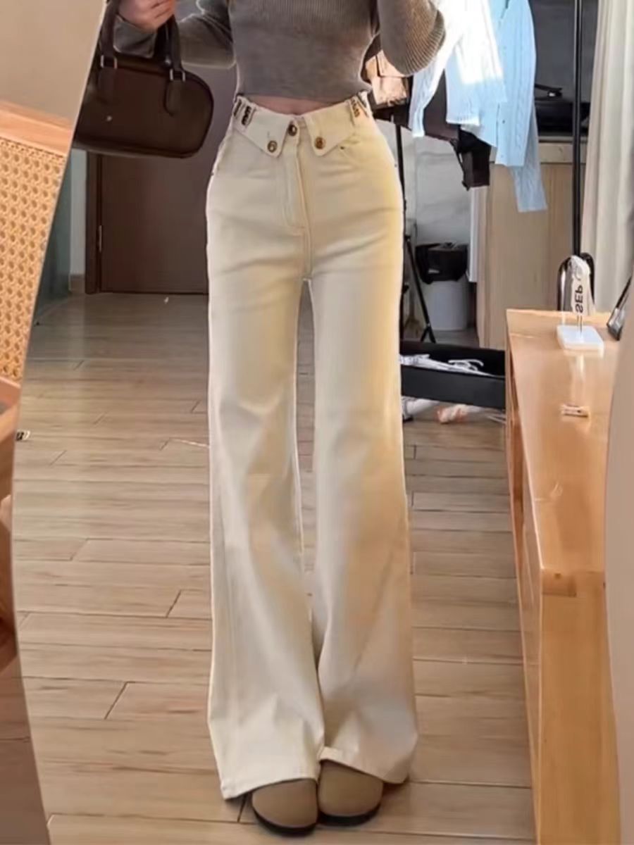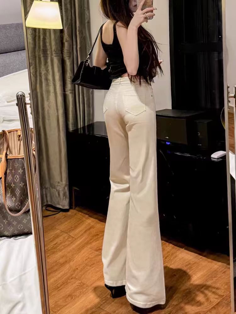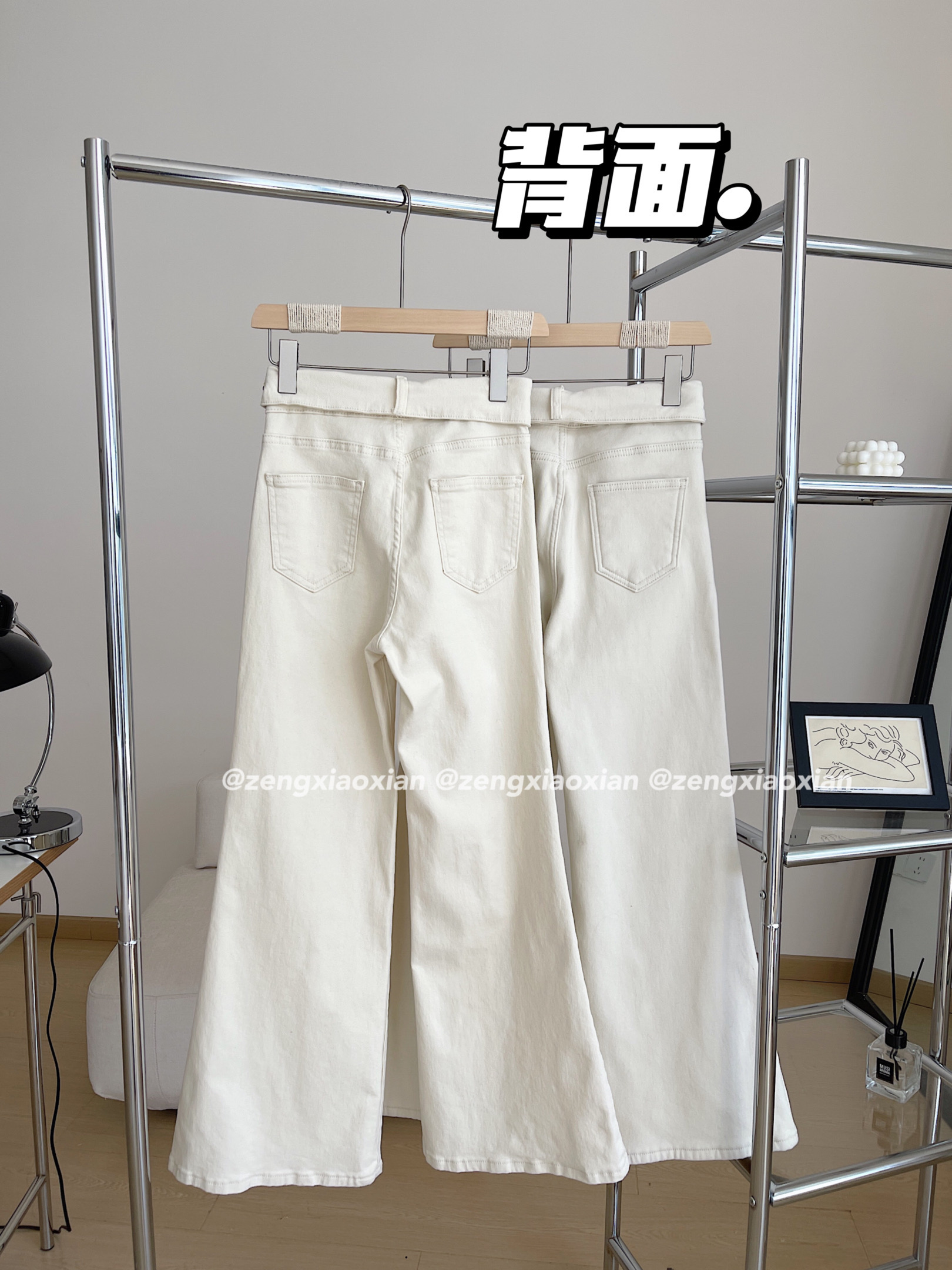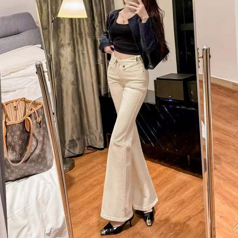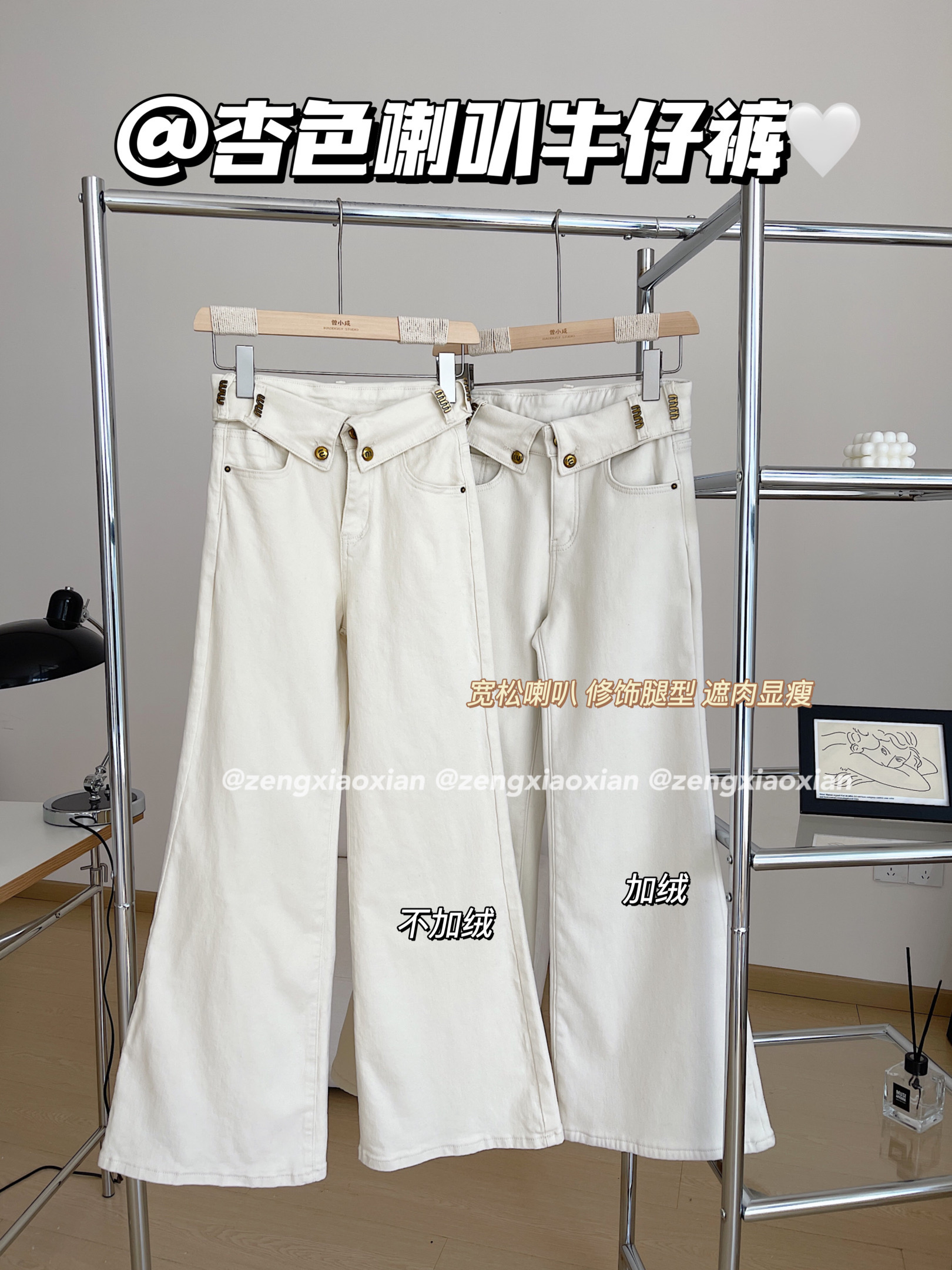 <曾小咸推荐> 米杏色高腰微喇牛仔裤