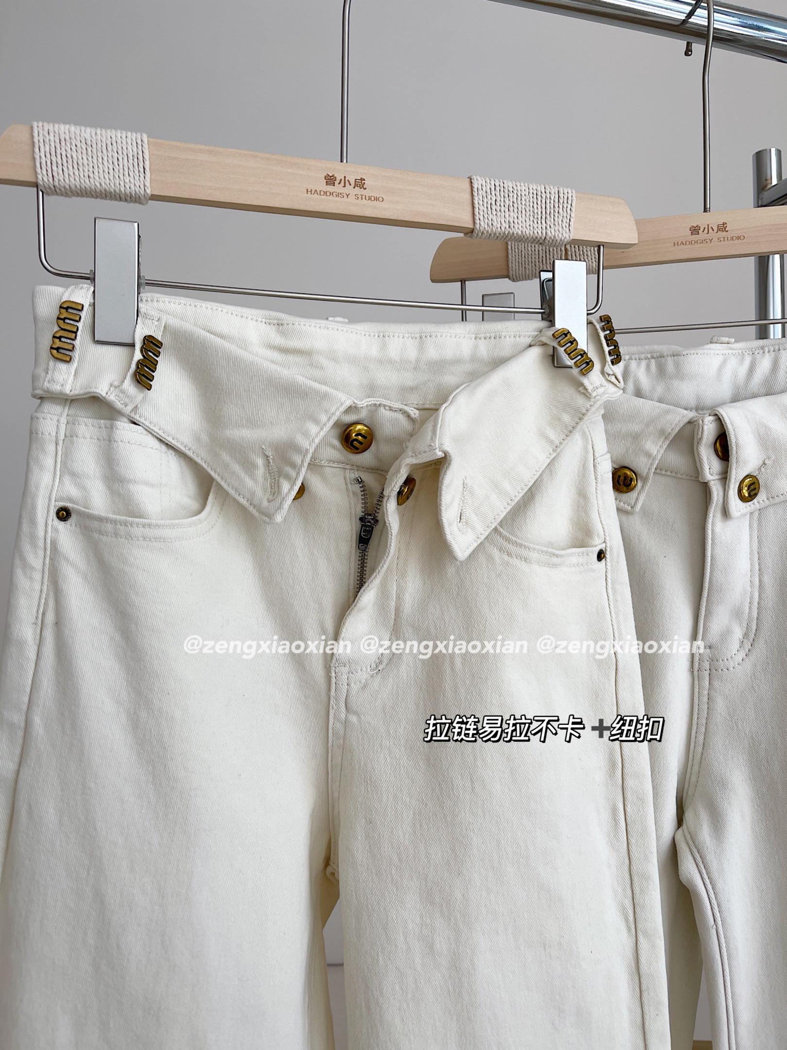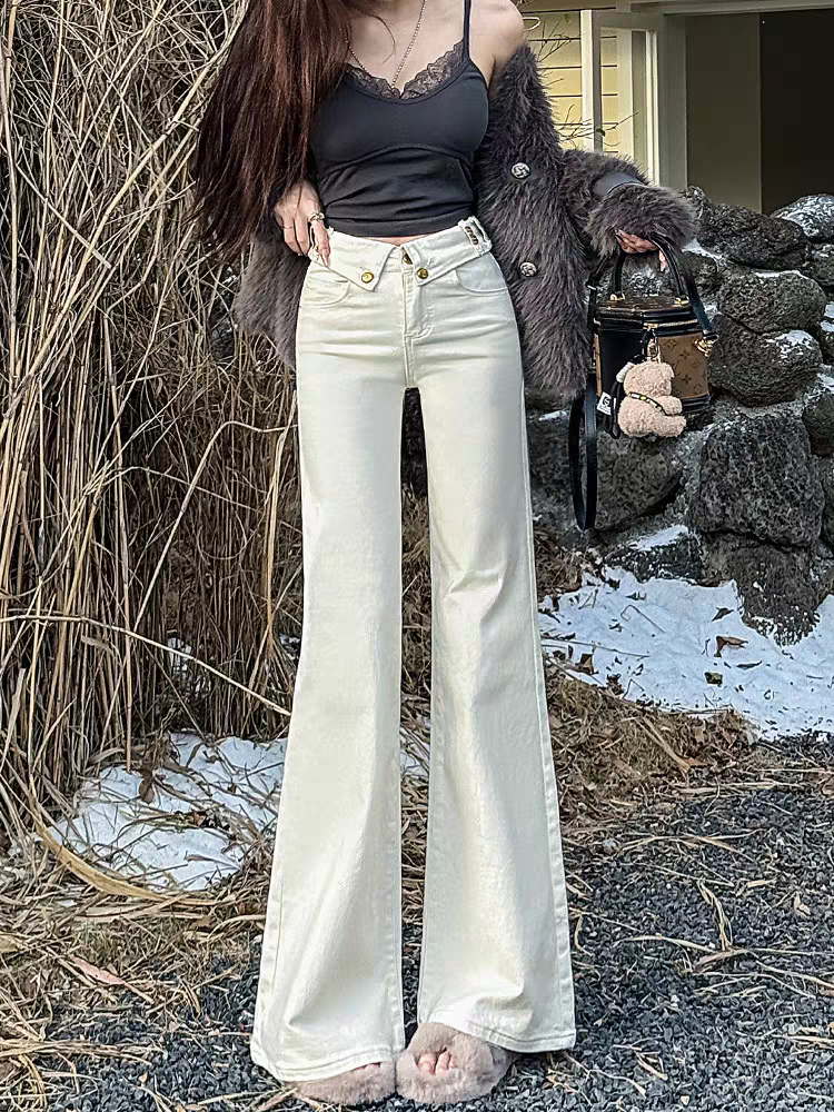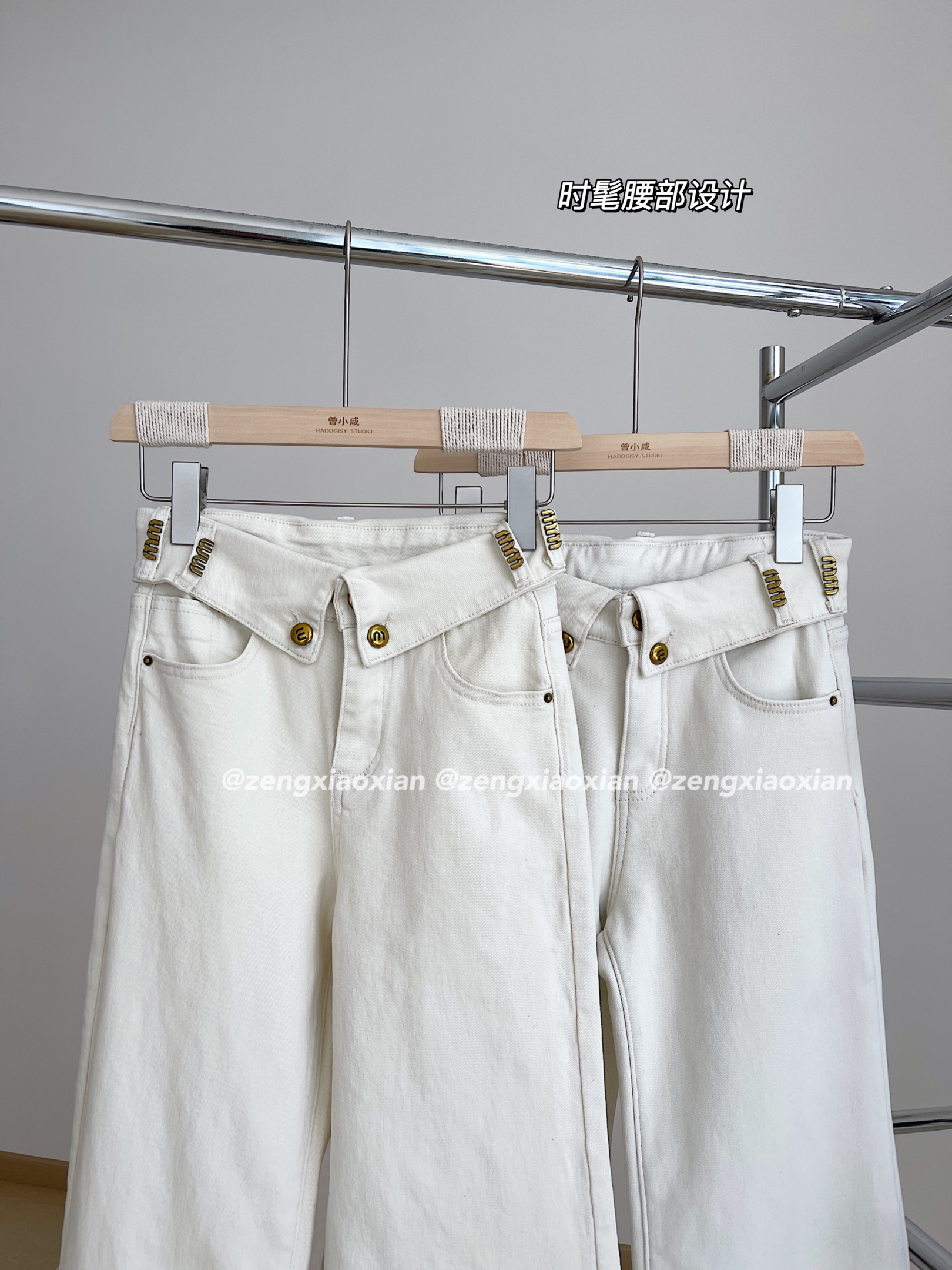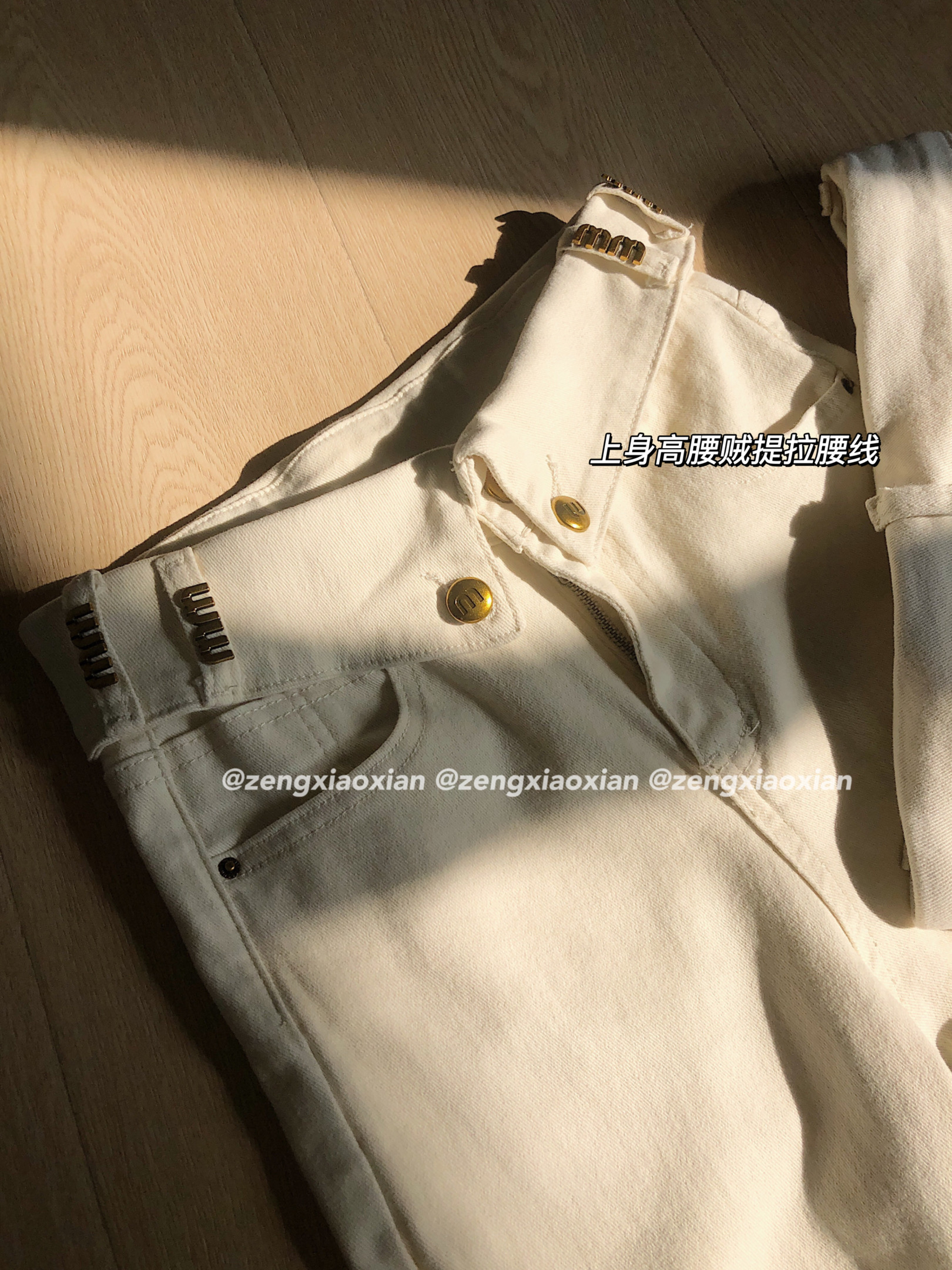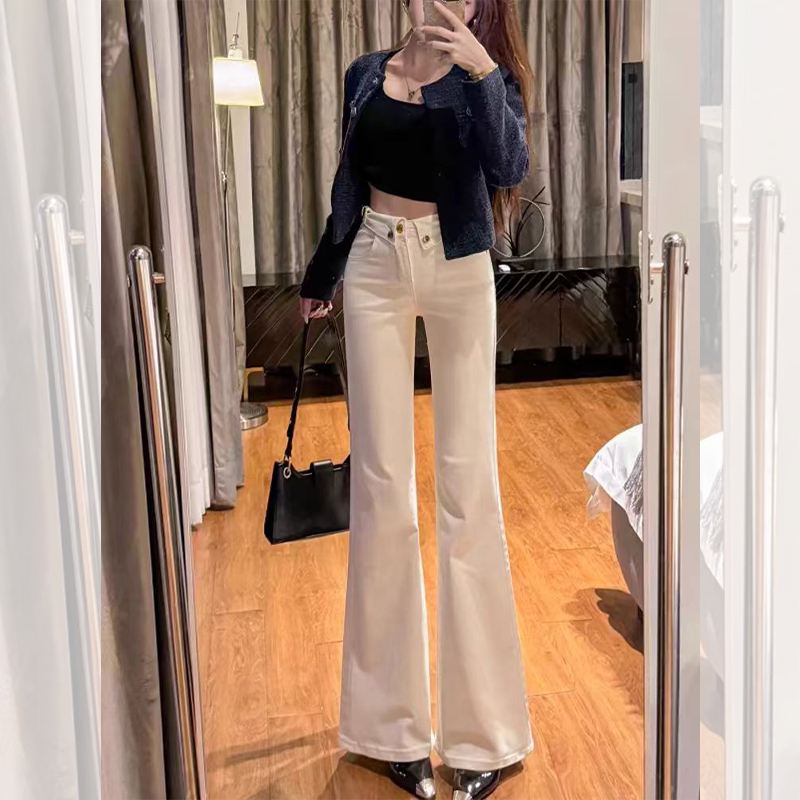<曾小咸推荐> 米杏色高腰微喇牛仔裤