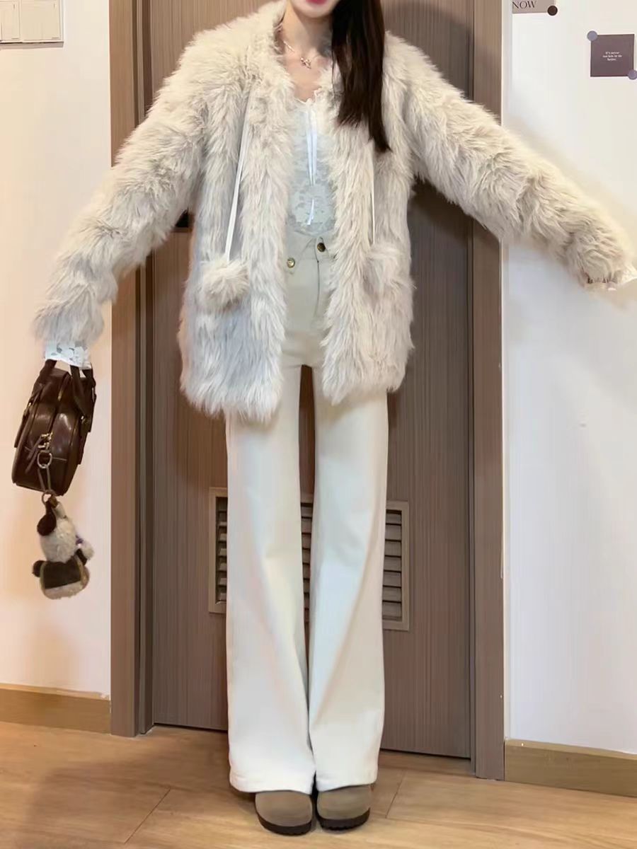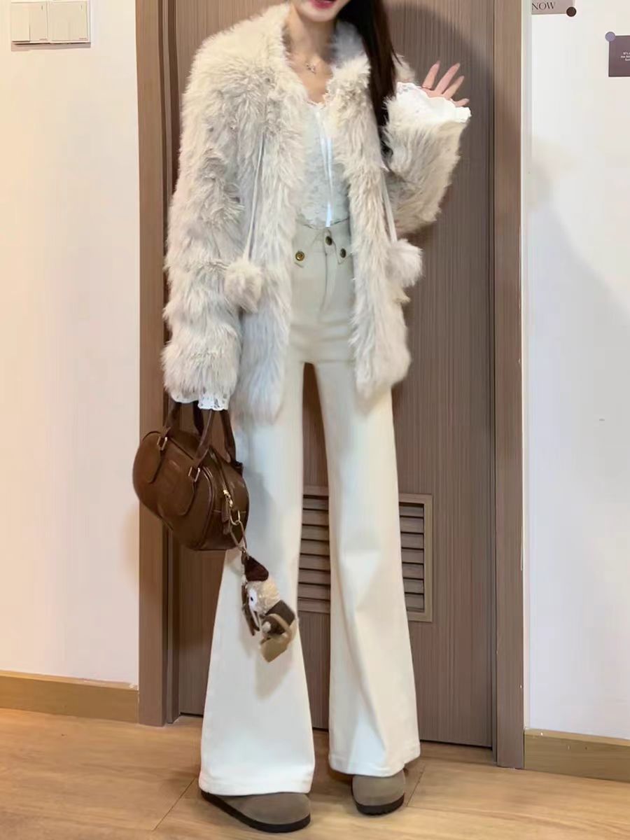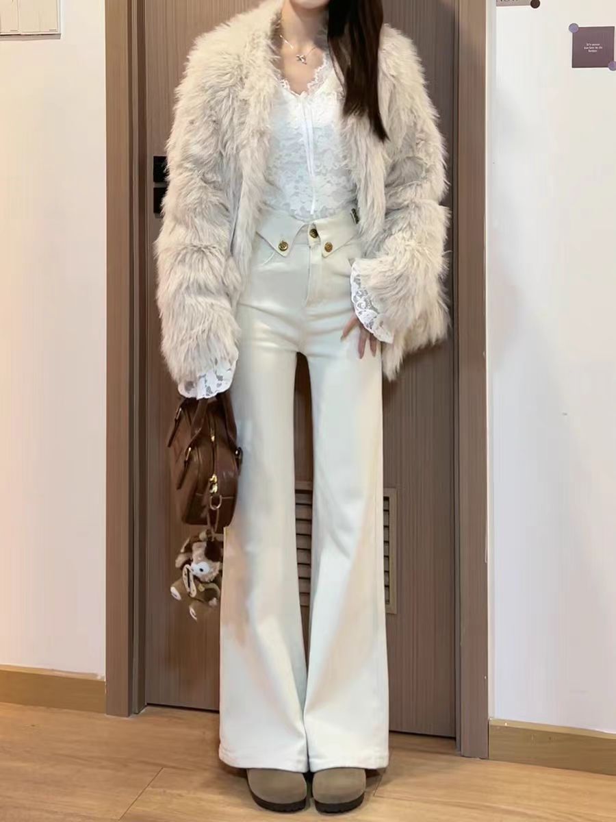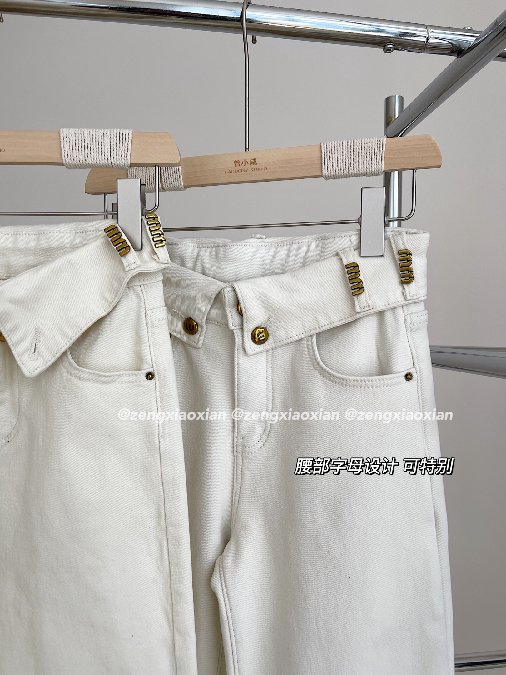 <曾小咸推荐> 米杏色高腰微喇牛仔裤