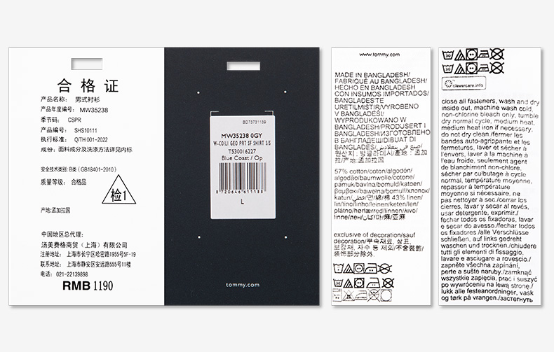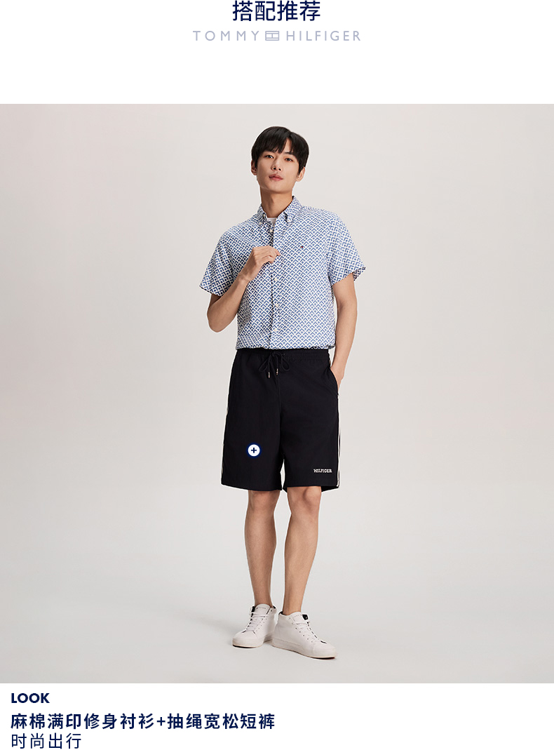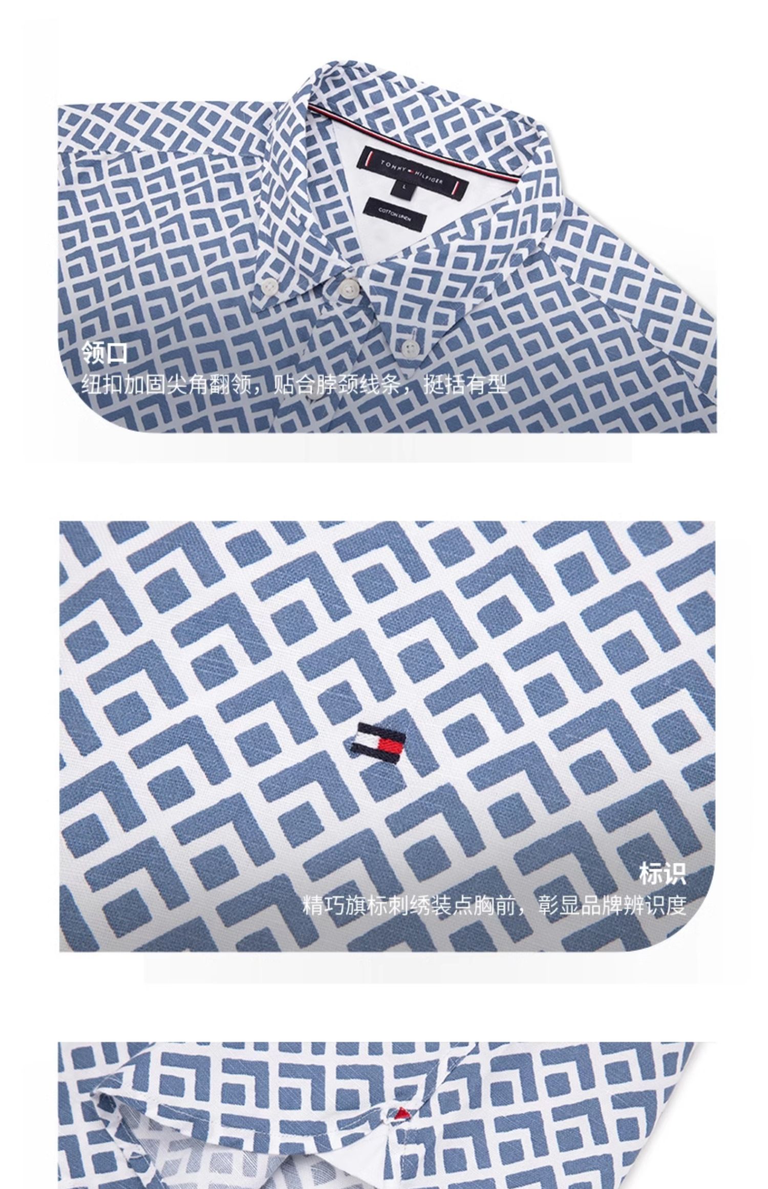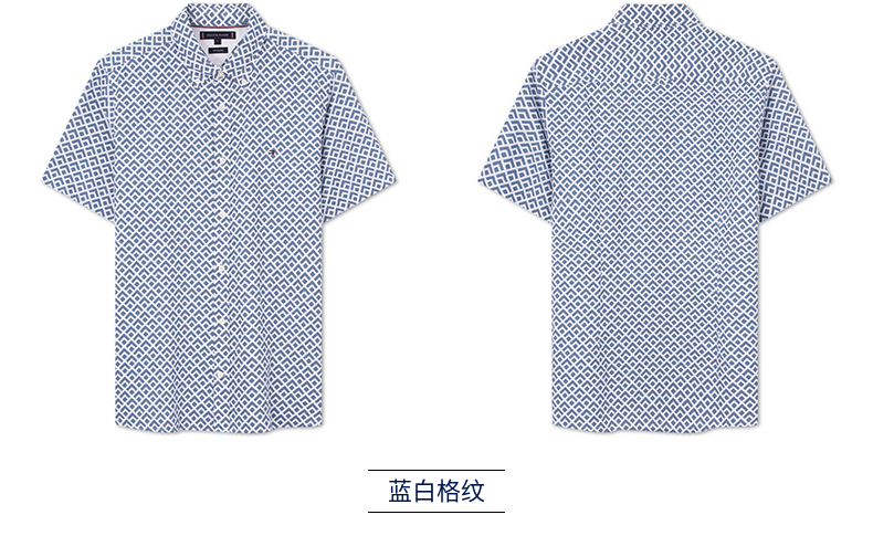 【特价商品不退不换】TOMMY 短袖衬衫男 MW35238-0GY 蓝白格纹.