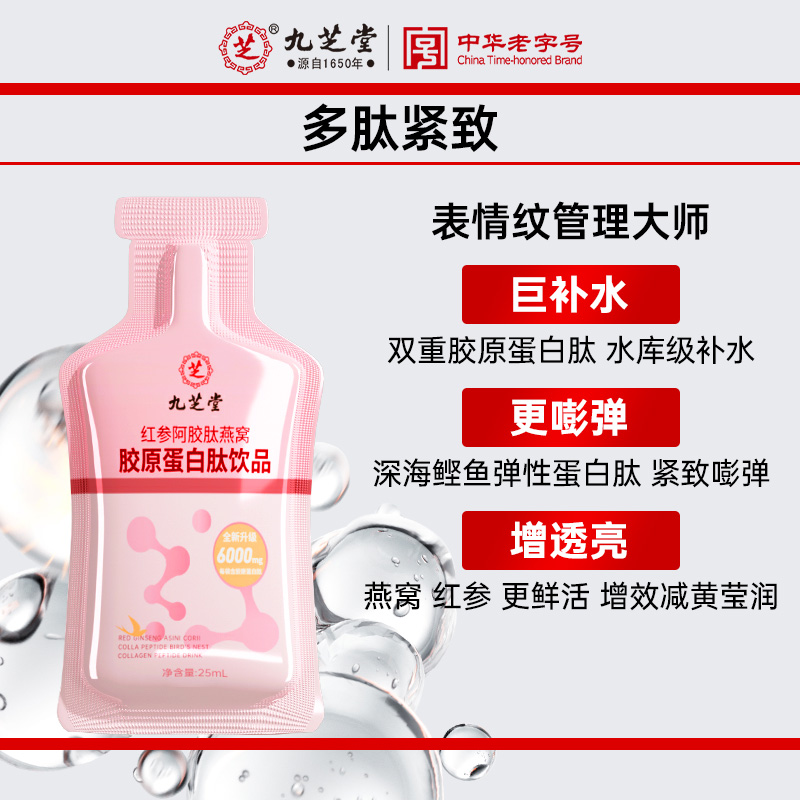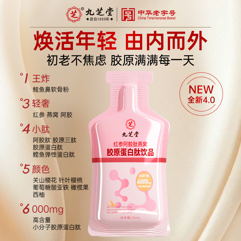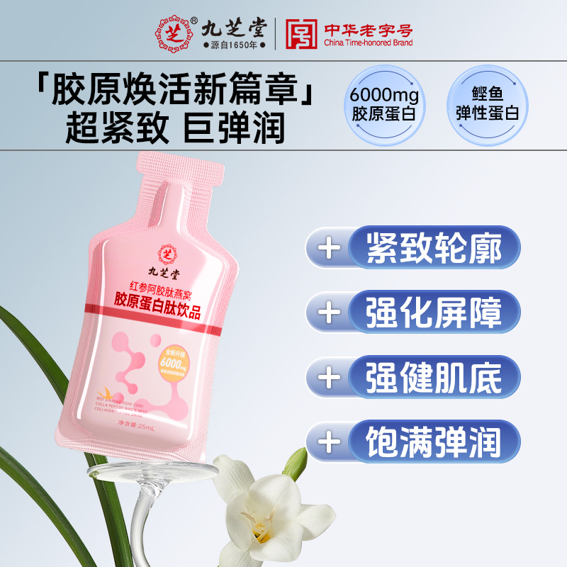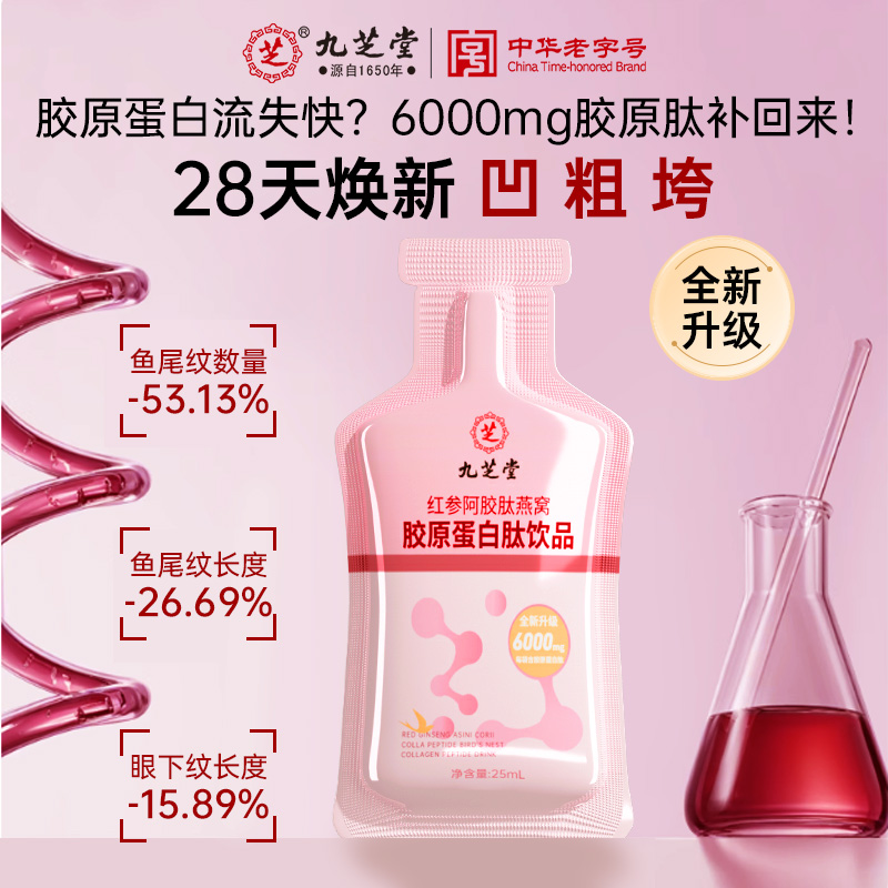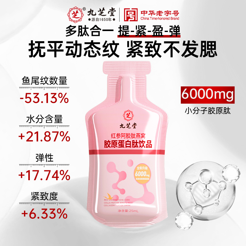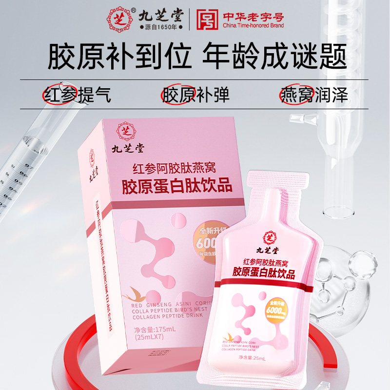 九芝堂-红参阿胶肽燕窝胶原蛋白肽饮品(升级款)175ml(25ml*7袋)