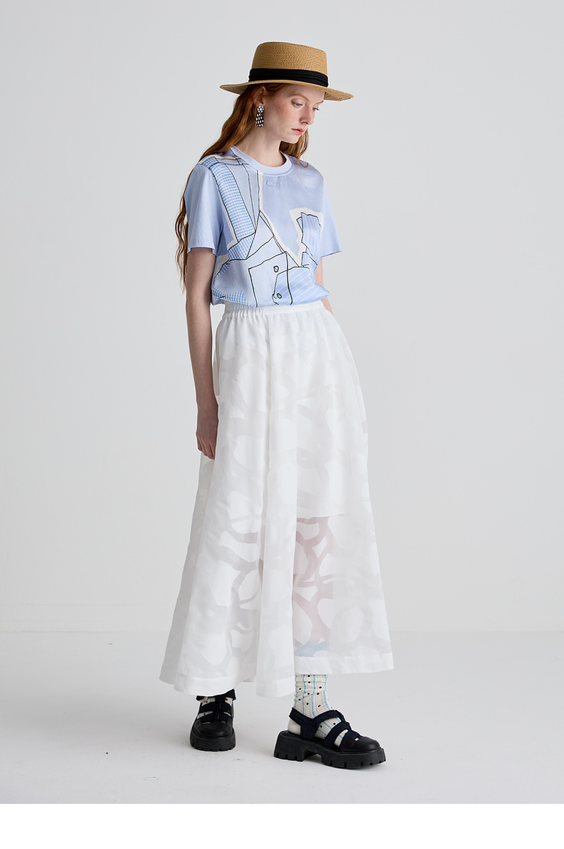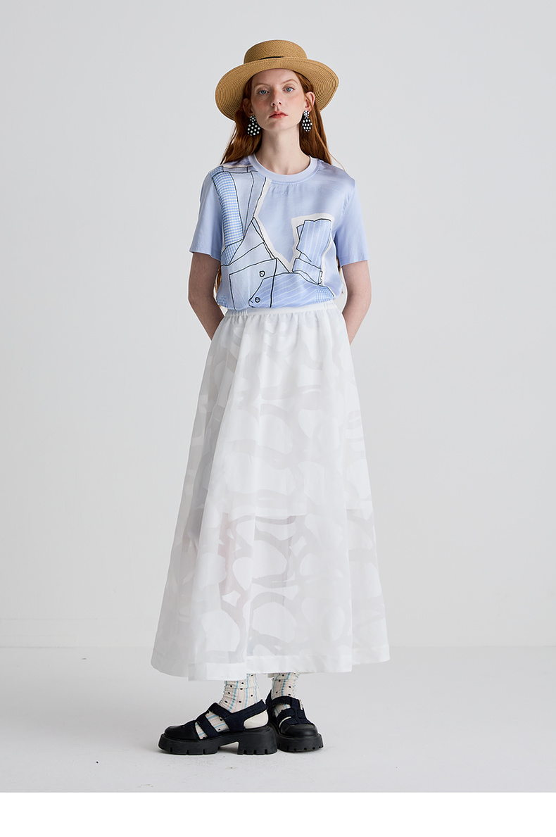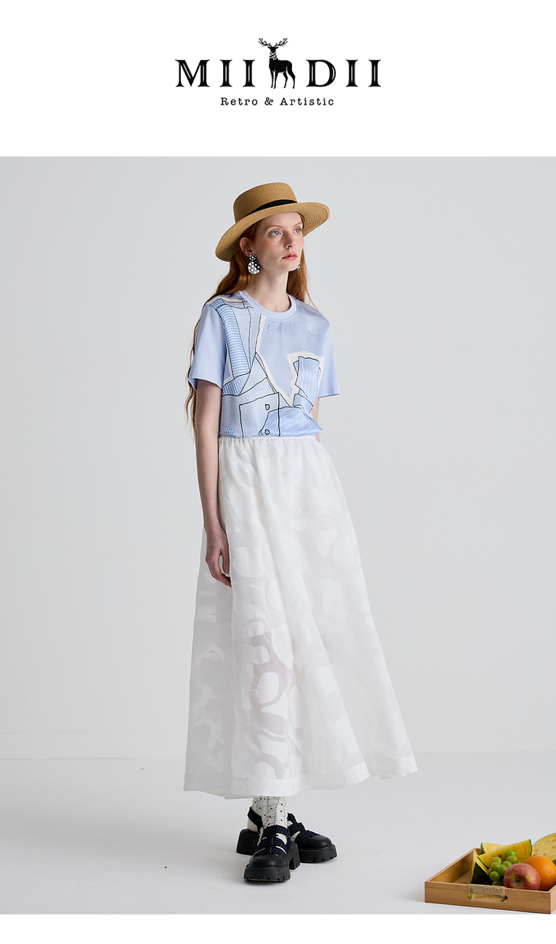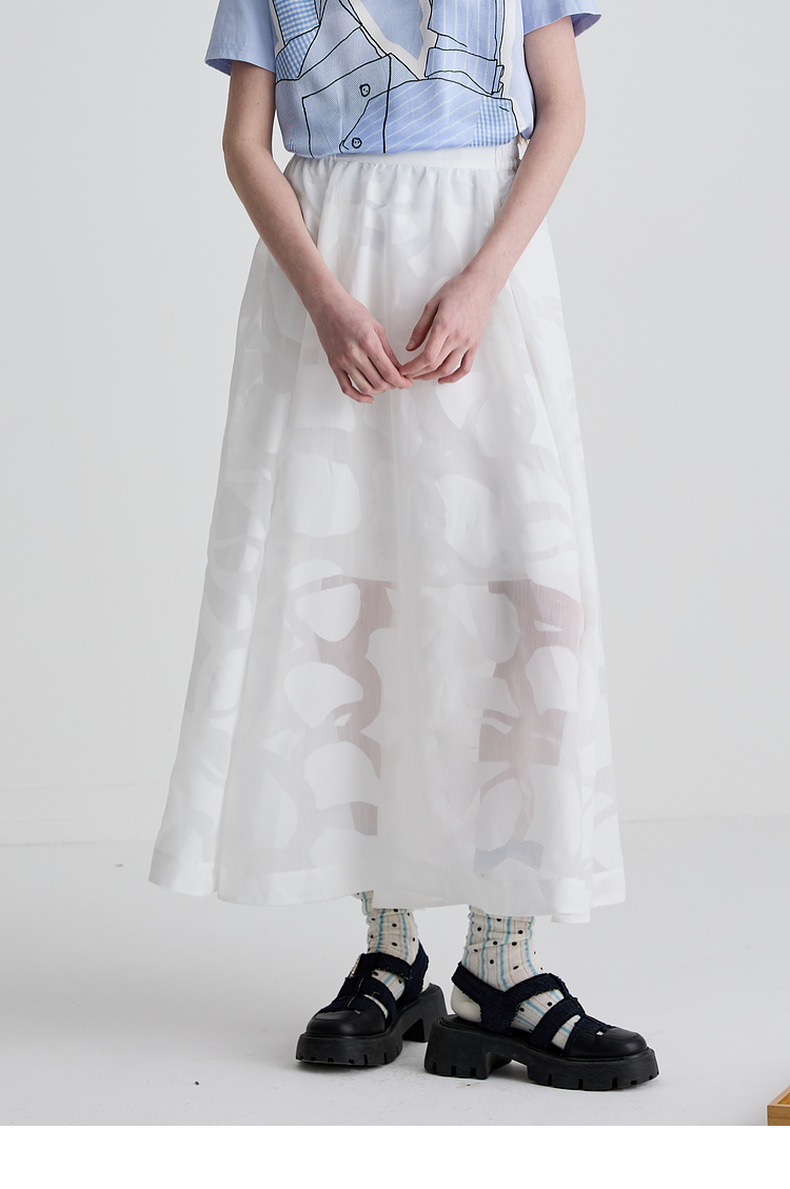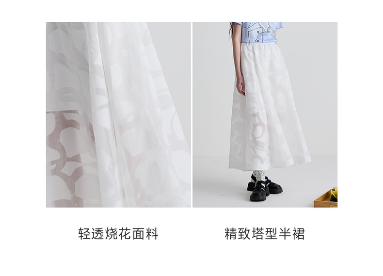 谜底半身裙女2025夏季新品度假大摆裙烧花宽松A型长半裙252MB0591