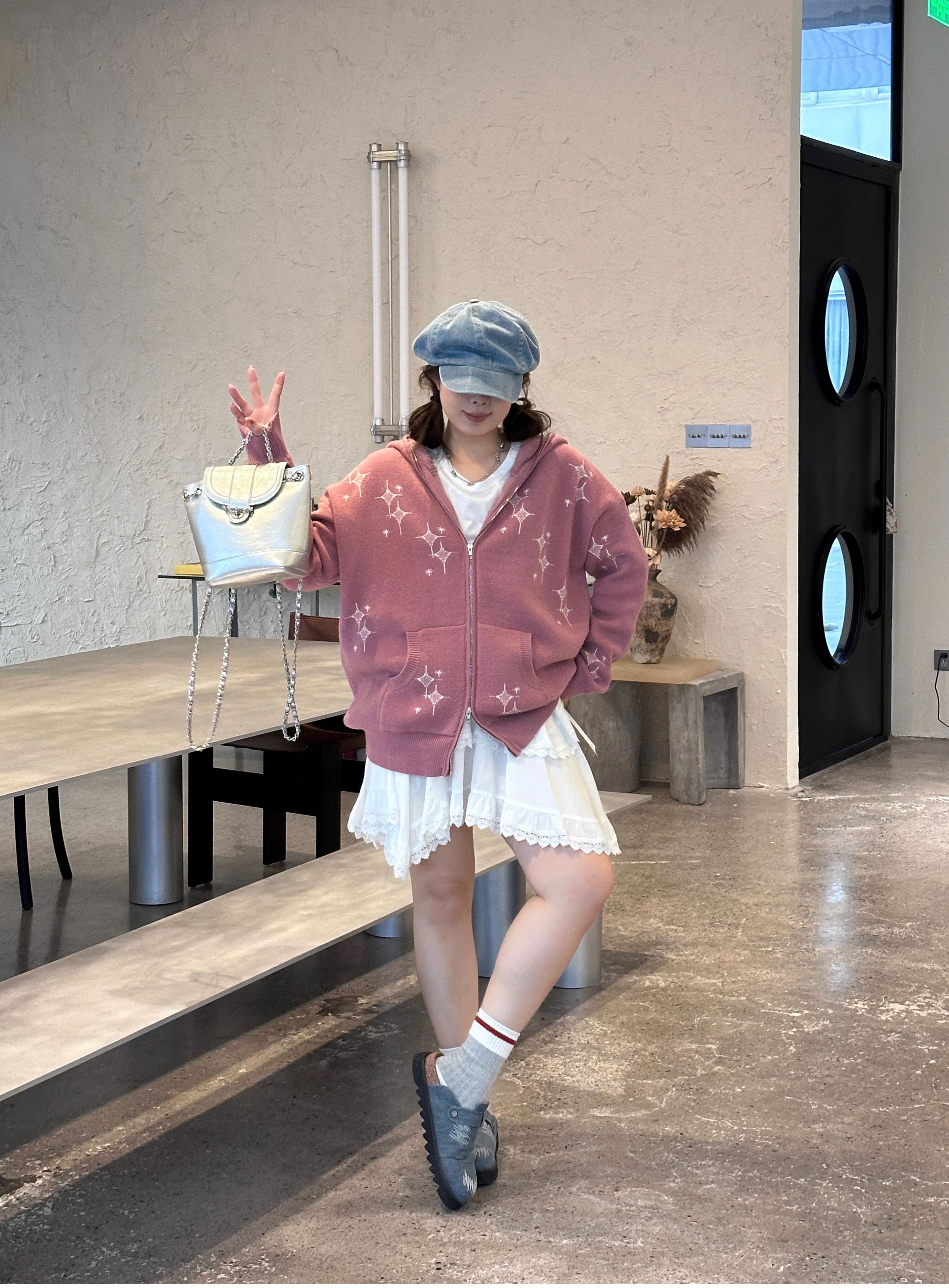 软软【星星毛衣】小众星星拉链连帽宽松慵懒风秋冬百搭外套