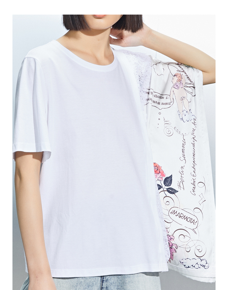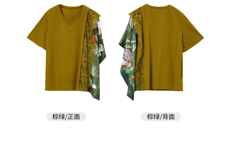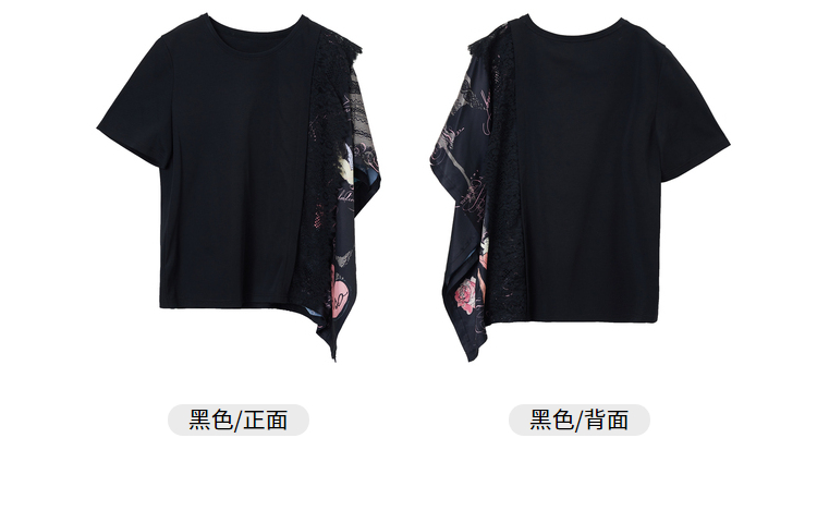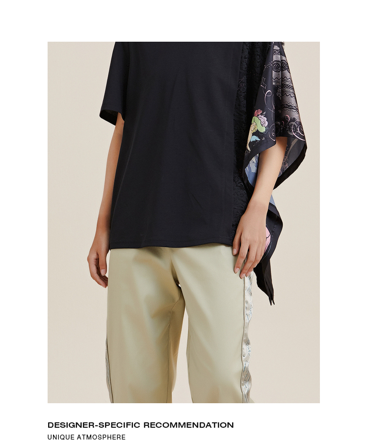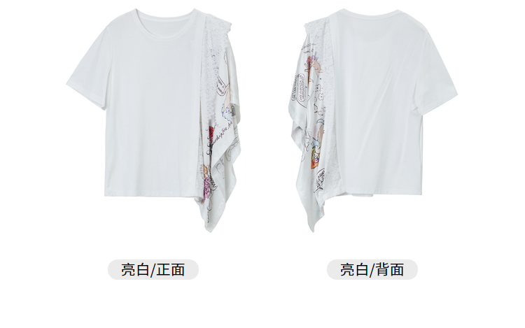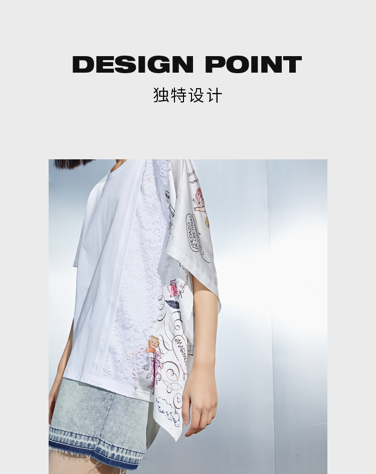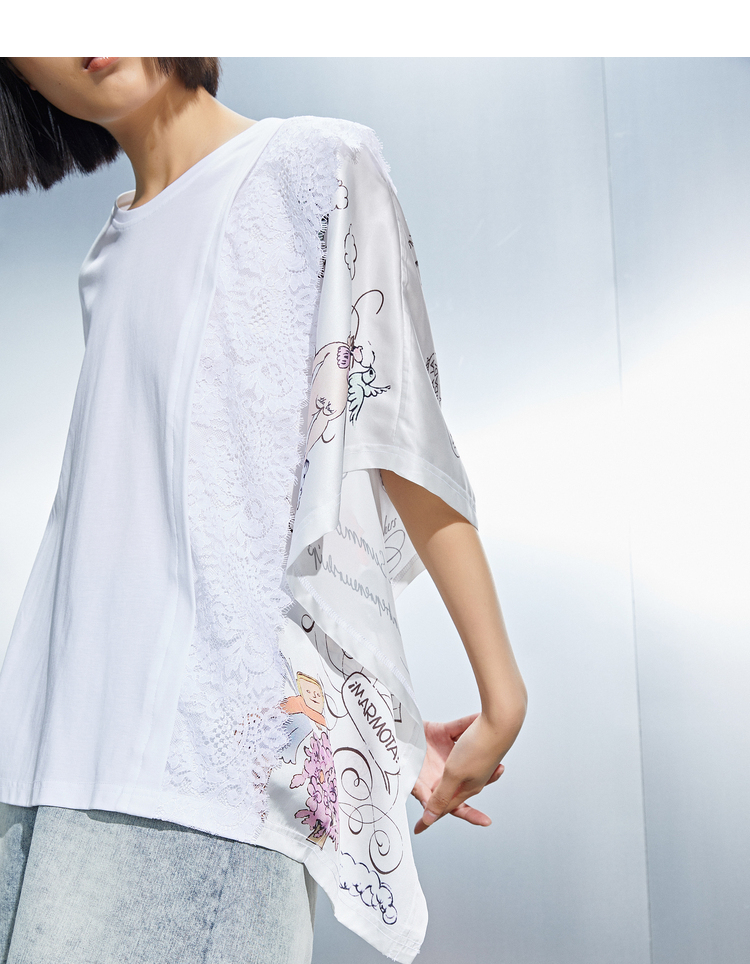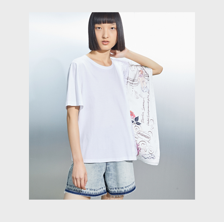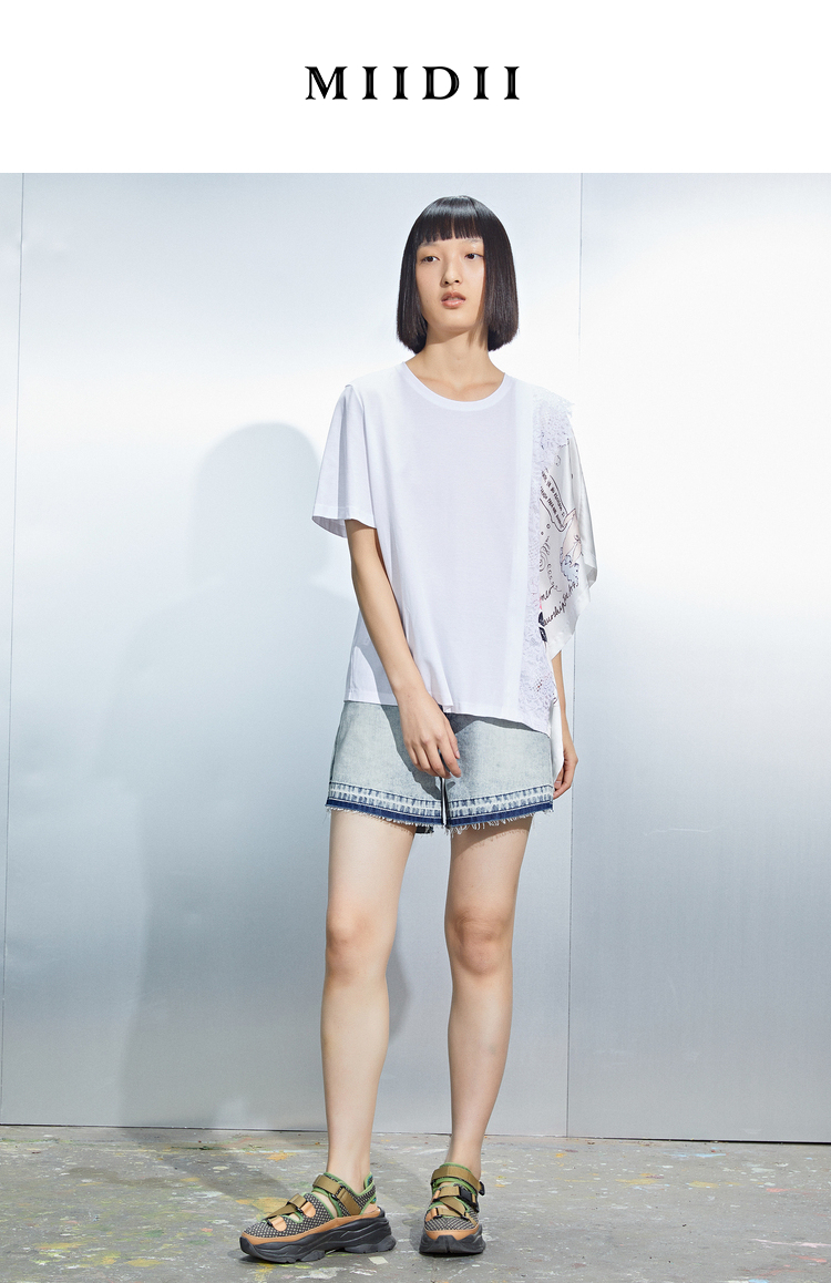 MIIDII/谜底短袖T恤女21夏新品宽松不对称设计圆领印花212MT0739