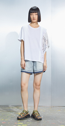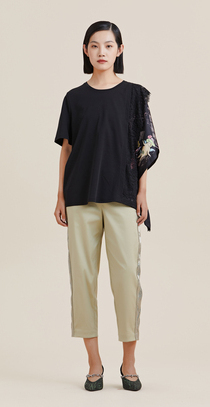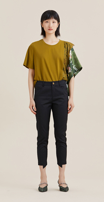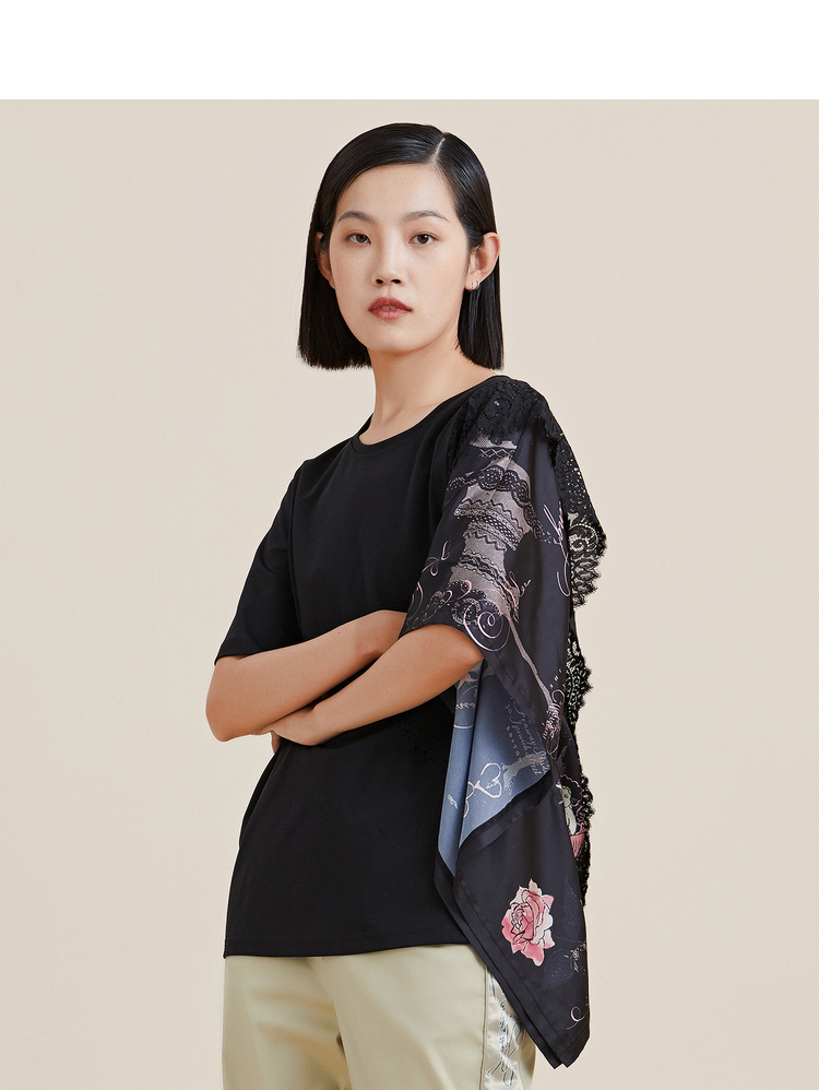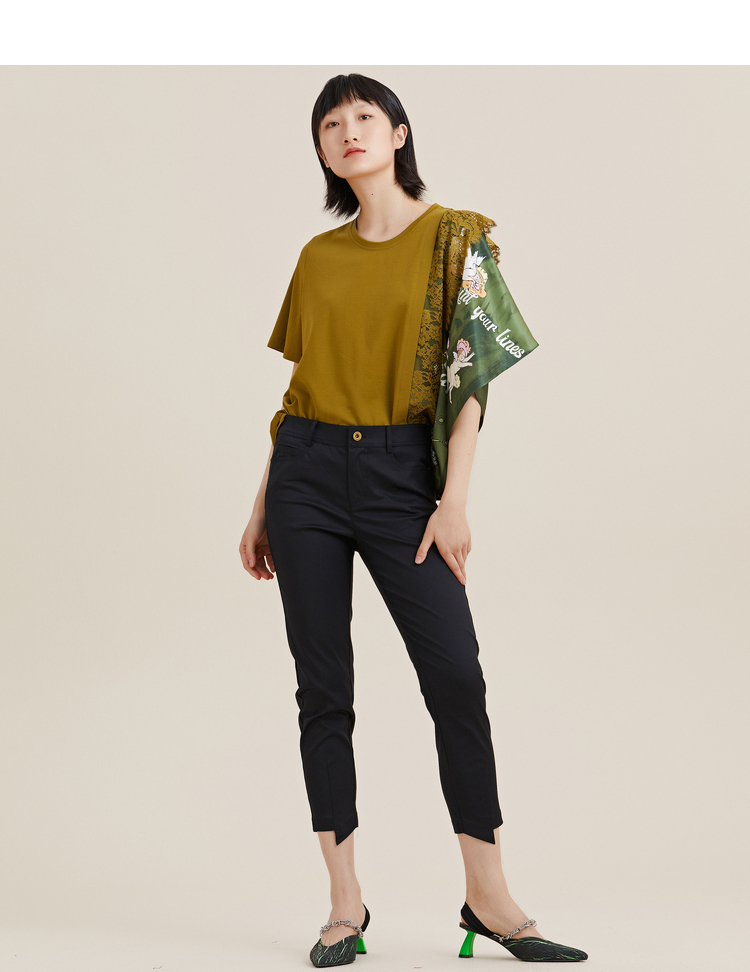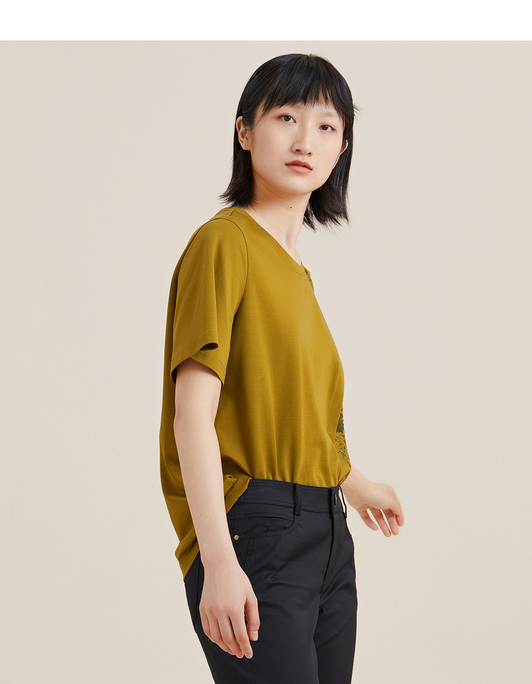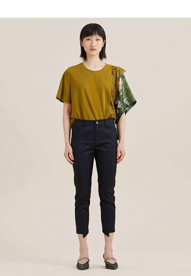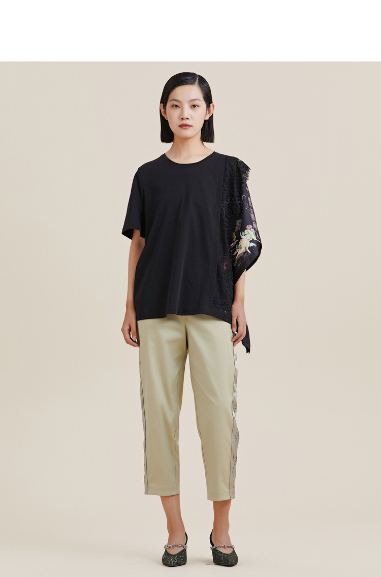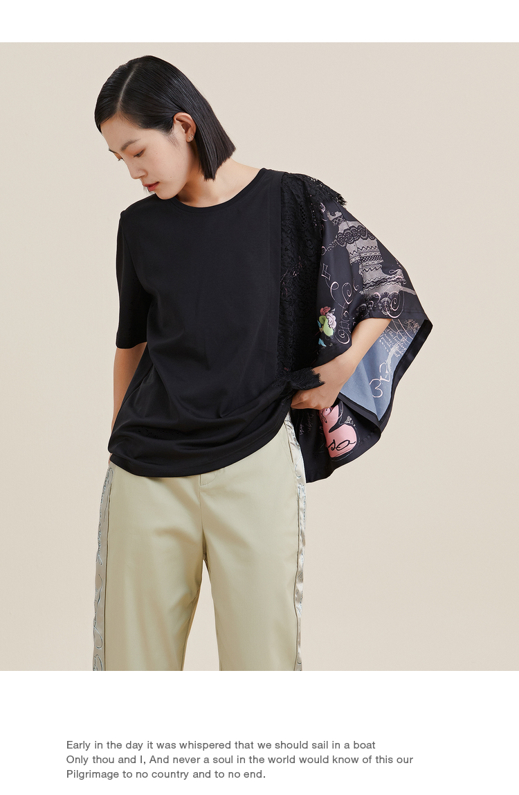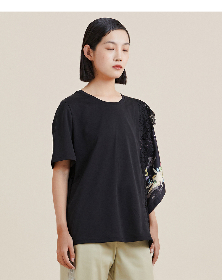 MIIDII/谜底短袖T恤女21夏新品宽松不对称设计圆领印花212MT0739