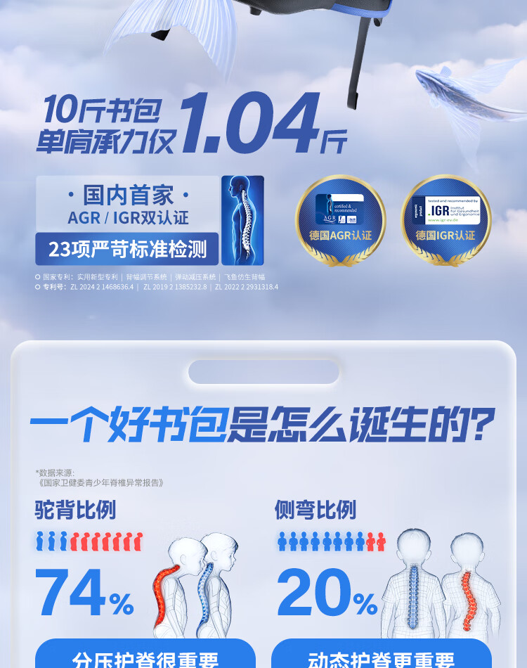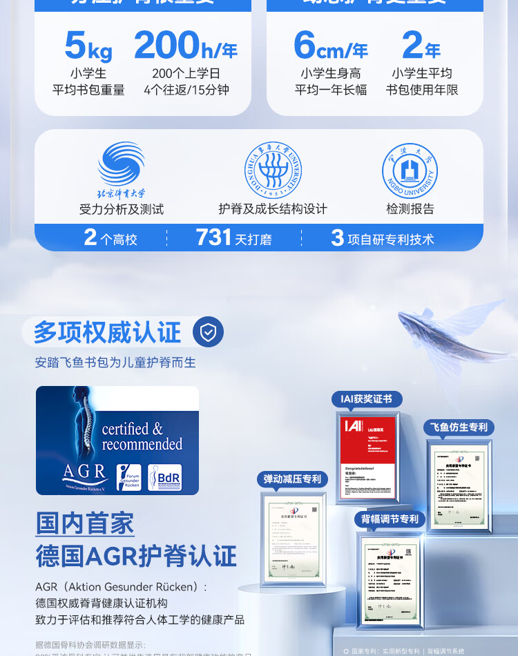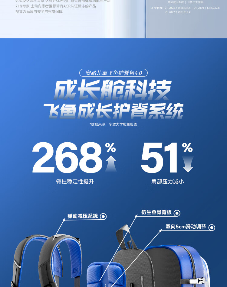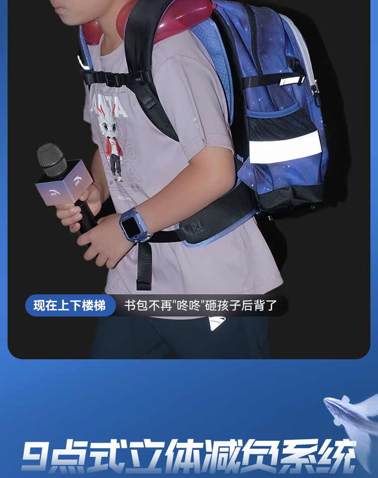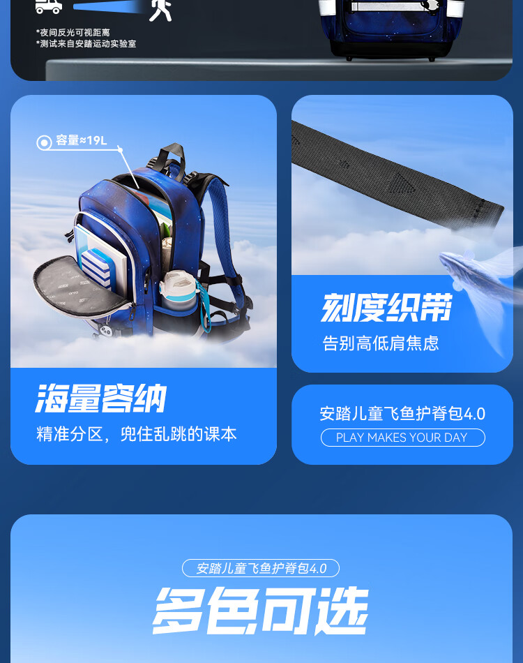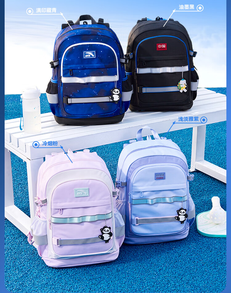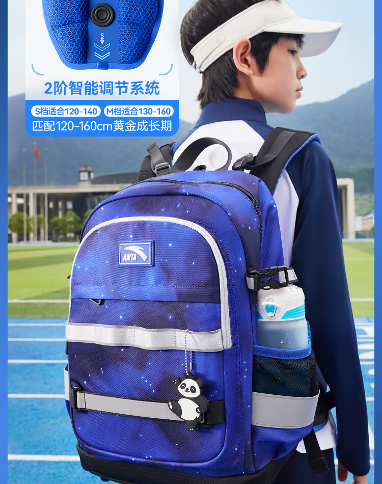 安踏儿童书包男大童2025飞鱼4.0平衡减压防水减负双肩背包392538156