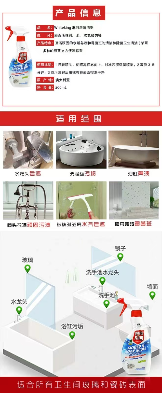 洁白王多用途清洁剂除水垢除霉菌污垢柠檬香型