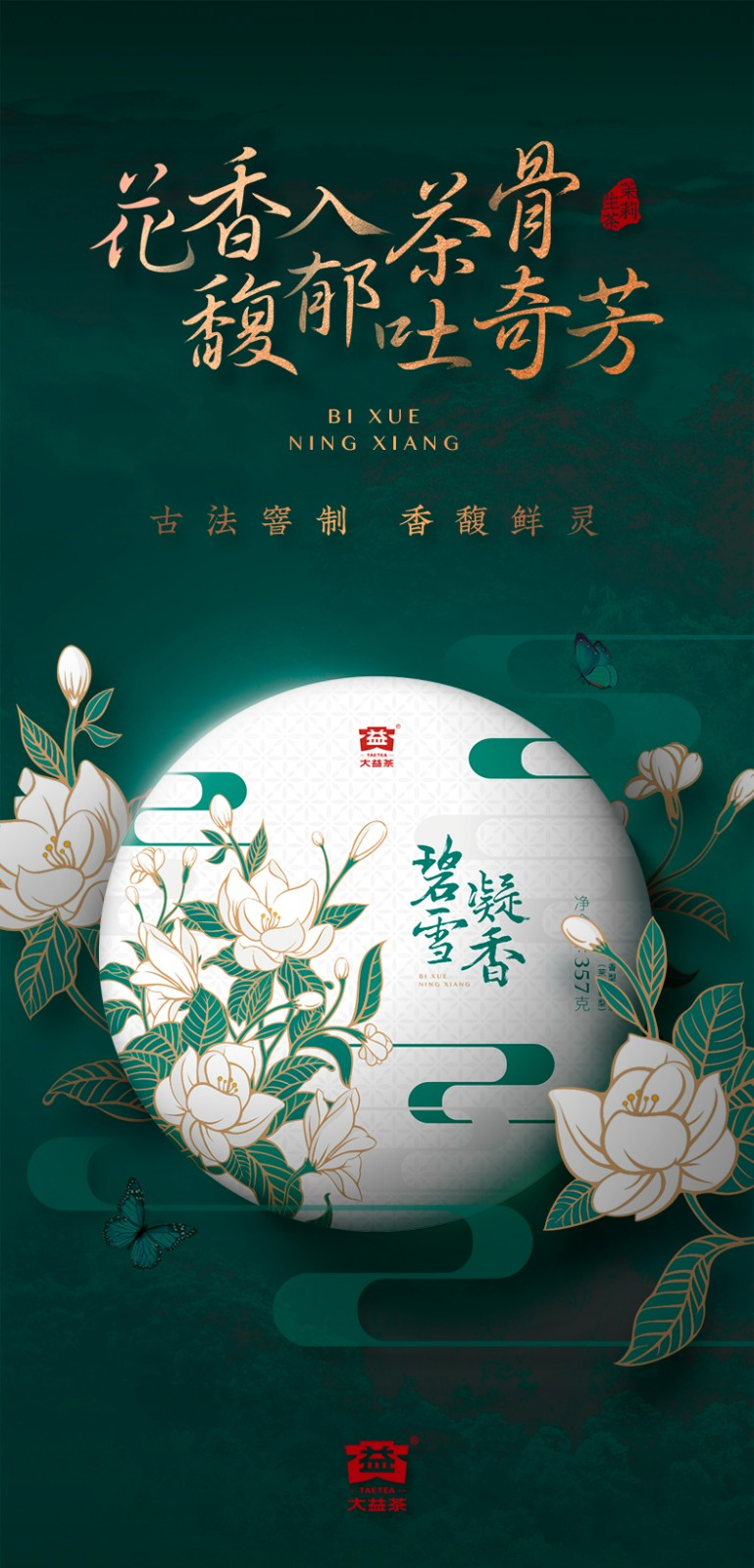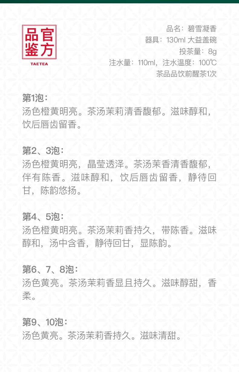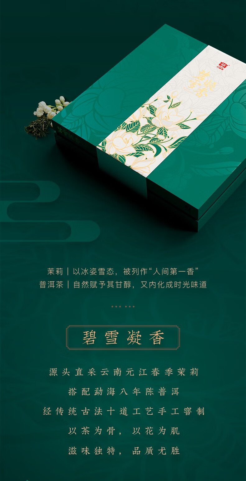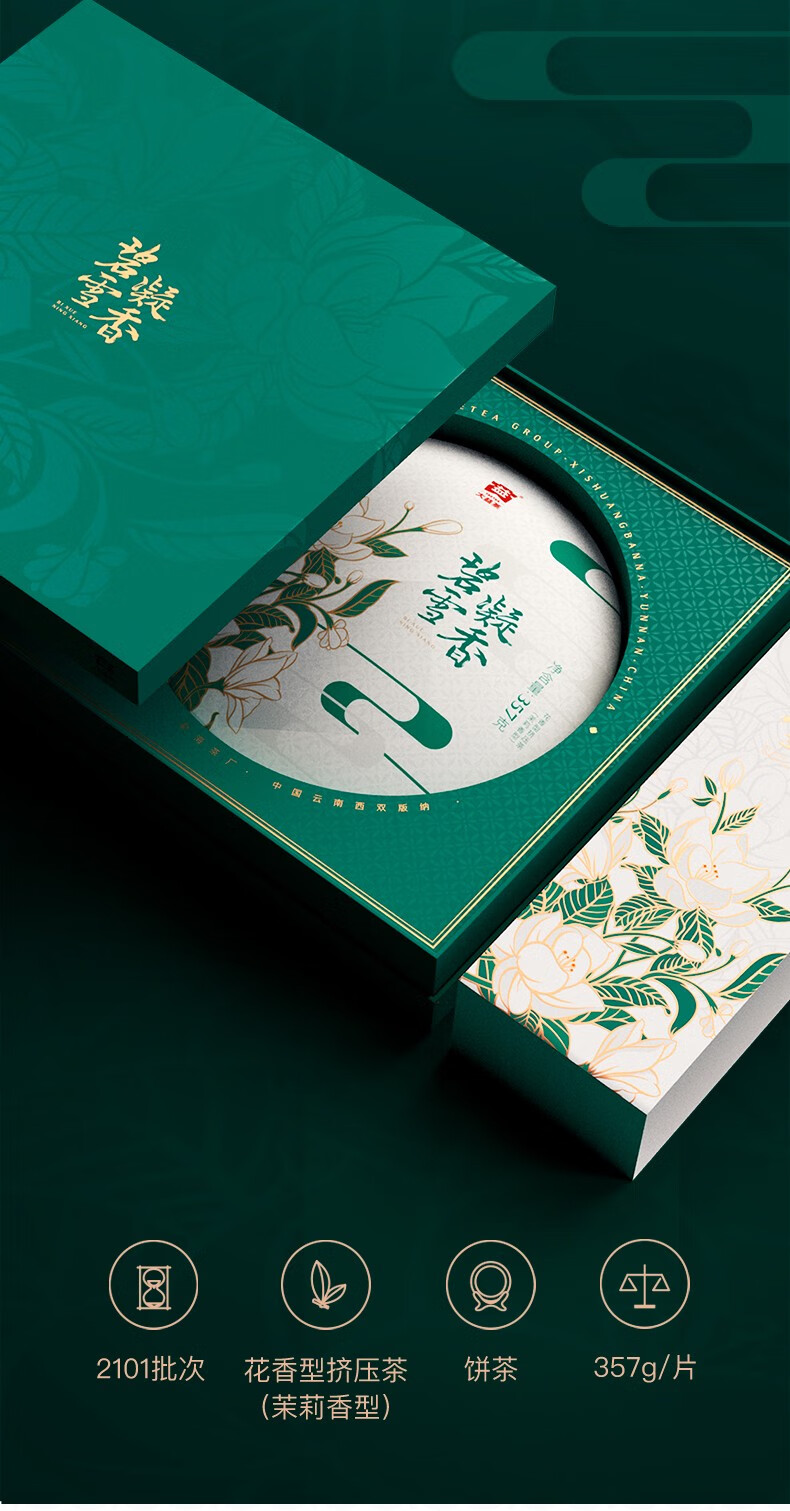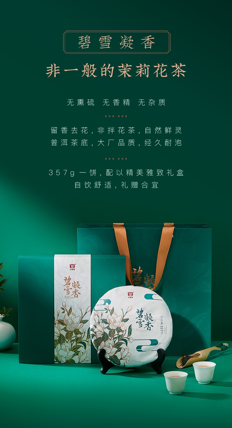 大益茶叶 普洱茶礼盒 碧雪凝香 茉莉生饼普洱礼盒 节日礼赠 单饼装 357g * 1盒