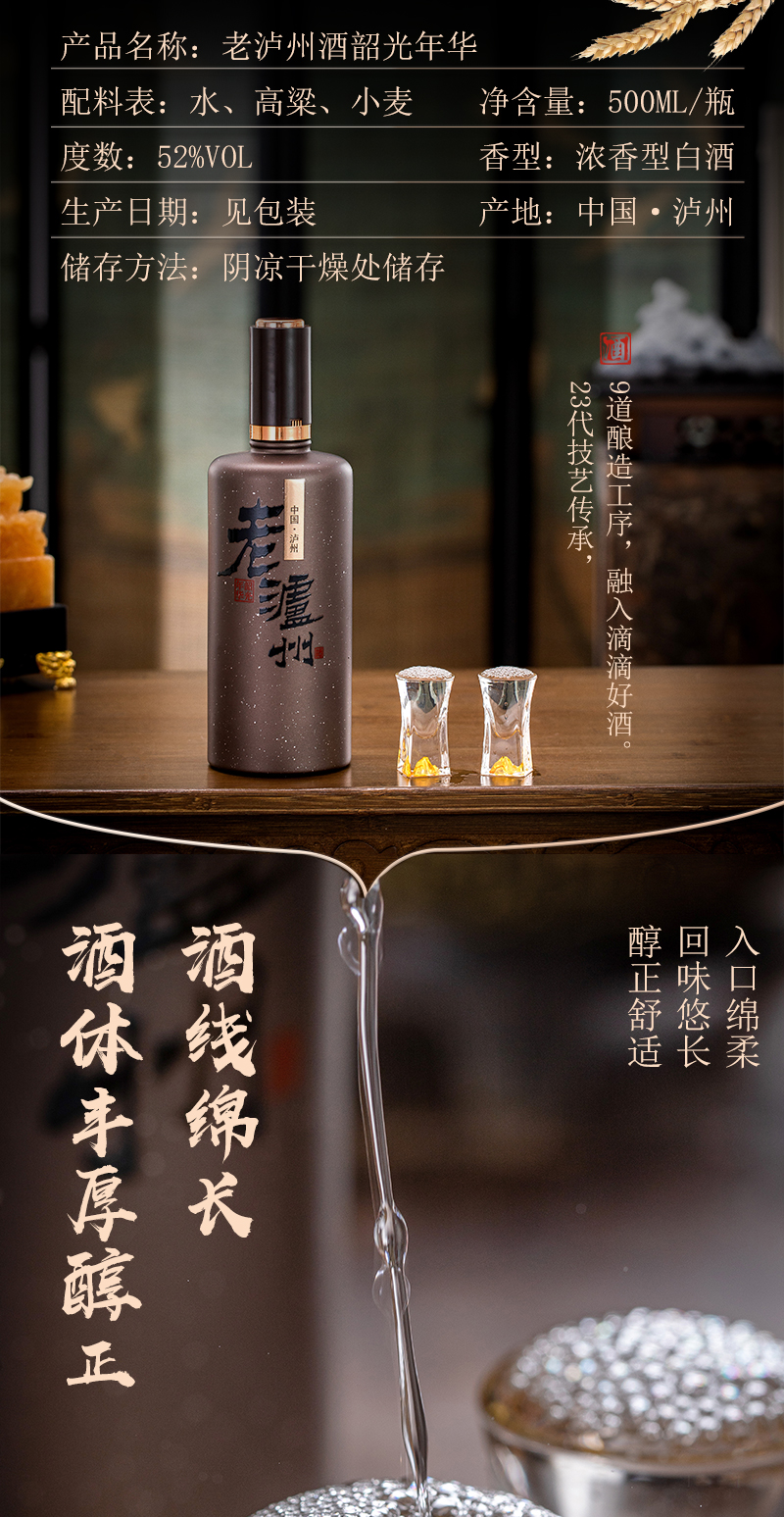 泸州老窖出品!老泸州韶光年华500ml*2瓶礼盒装 52度古法酿造优级白酒 送礼佳品