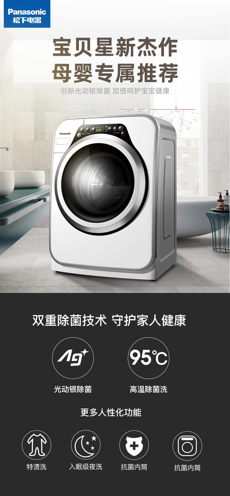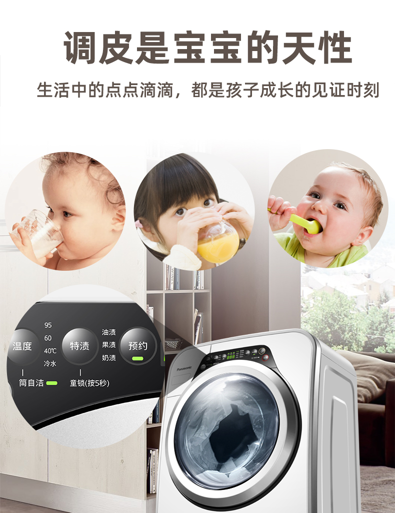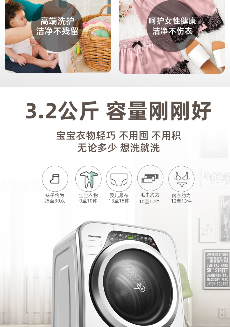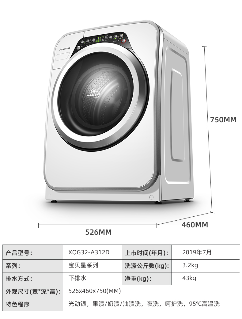 Panasonic/松下XQG32-A312D儿童婴儿全自动滚筒除菌洗衣机