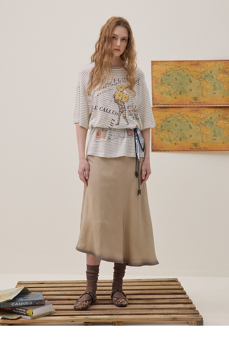 谜底斜裁半裙2026年夏季新品下摆喷色复古艺术中长裙女262MB0624