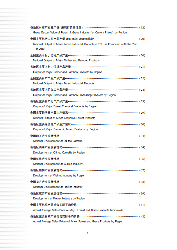 本书中内蒙古集团、吉林集团、长白山集团、龙江集团、伊春集团和大兴安岭指内蒙古森工集团、吉林森工集团、长白山森工集团、龙江森工集团、伊春森工集团和大兴安岭林业集团。本书中林草教育数据来源于教育部,进出口数据来源于海关总署,除特别标注外不包括香港特别行政区、澳门特别行政区以及台湾省。