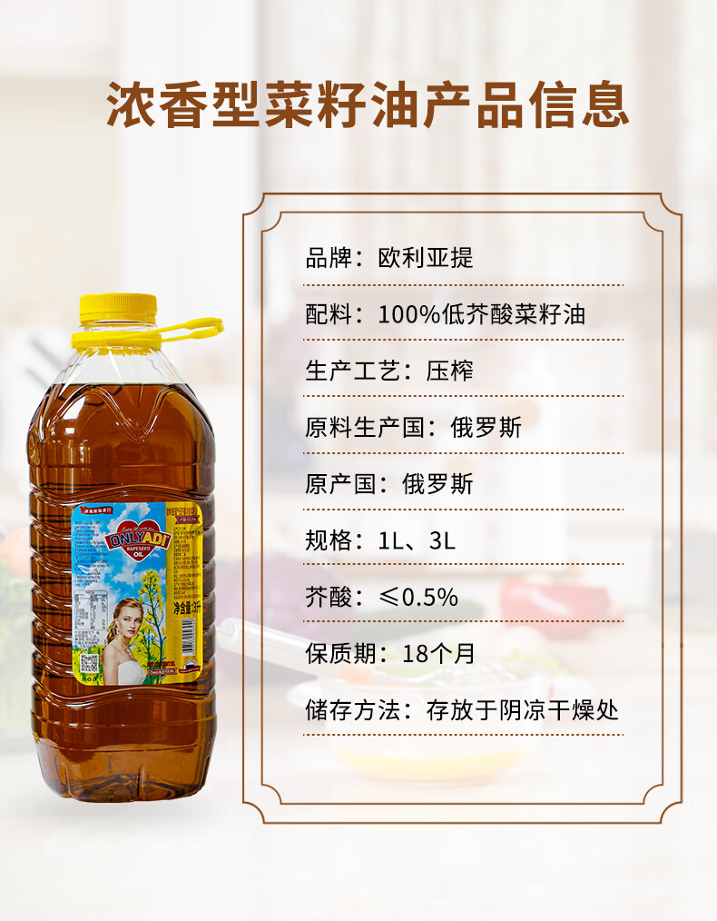 欧利亚提低芥酸浓香菜籽油1L/3L