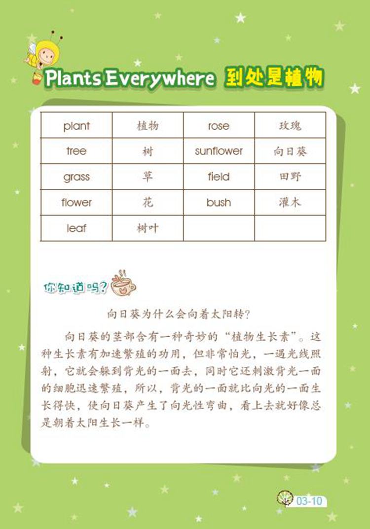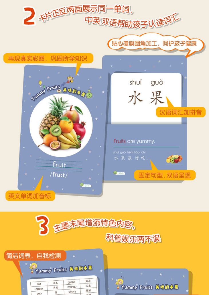 中英双语:中英双语词汇正反搭配,一个词汇两种语言。