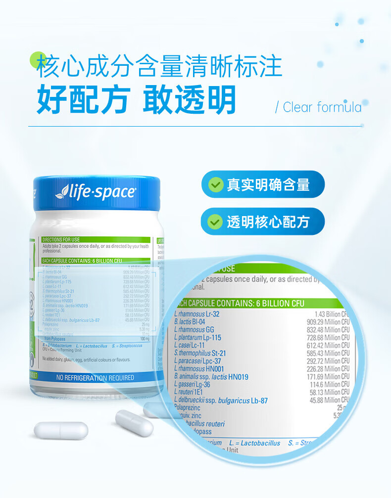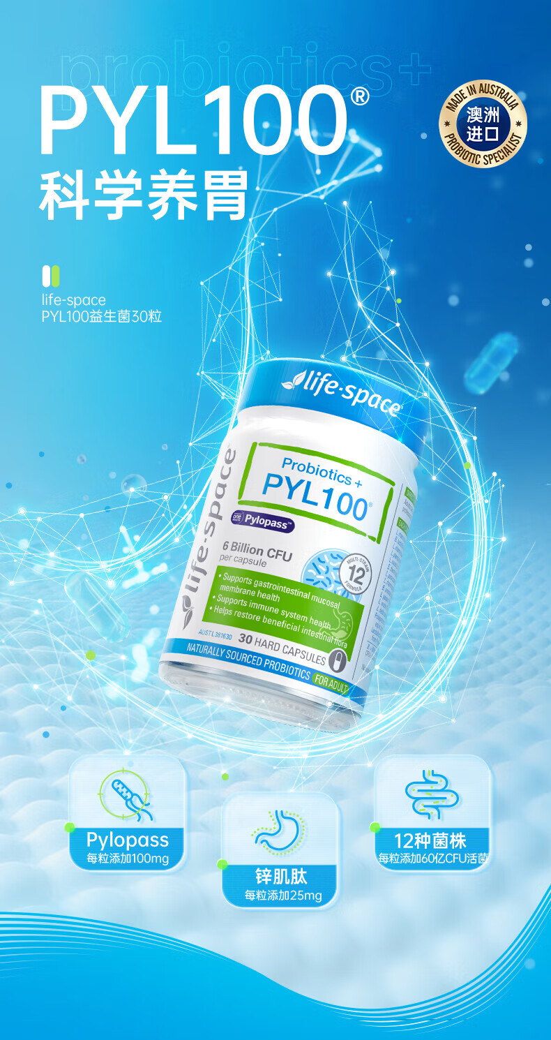 【保税仓】Life-Space PYL100益生菌胶囊 30粒/瓶