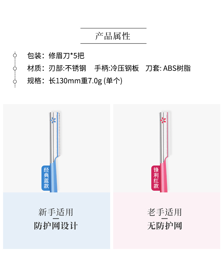 Kai贝印 修眉刀红 红色老手/蓝色新手 5支装/盒