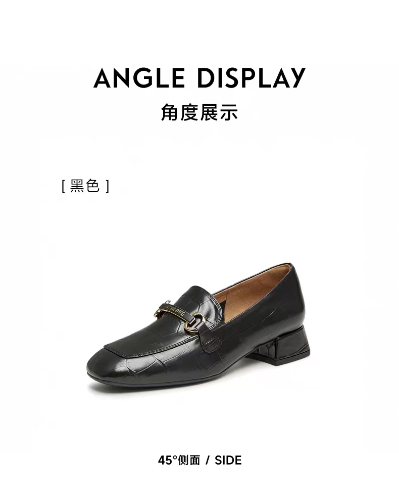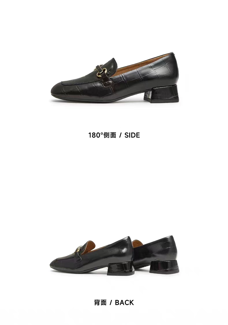 Tata他她粗跟乐福鞋女百搭一脚蹬小皮鞋女单鞋2023秋新款