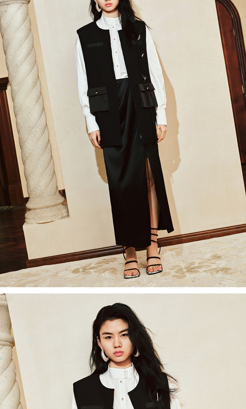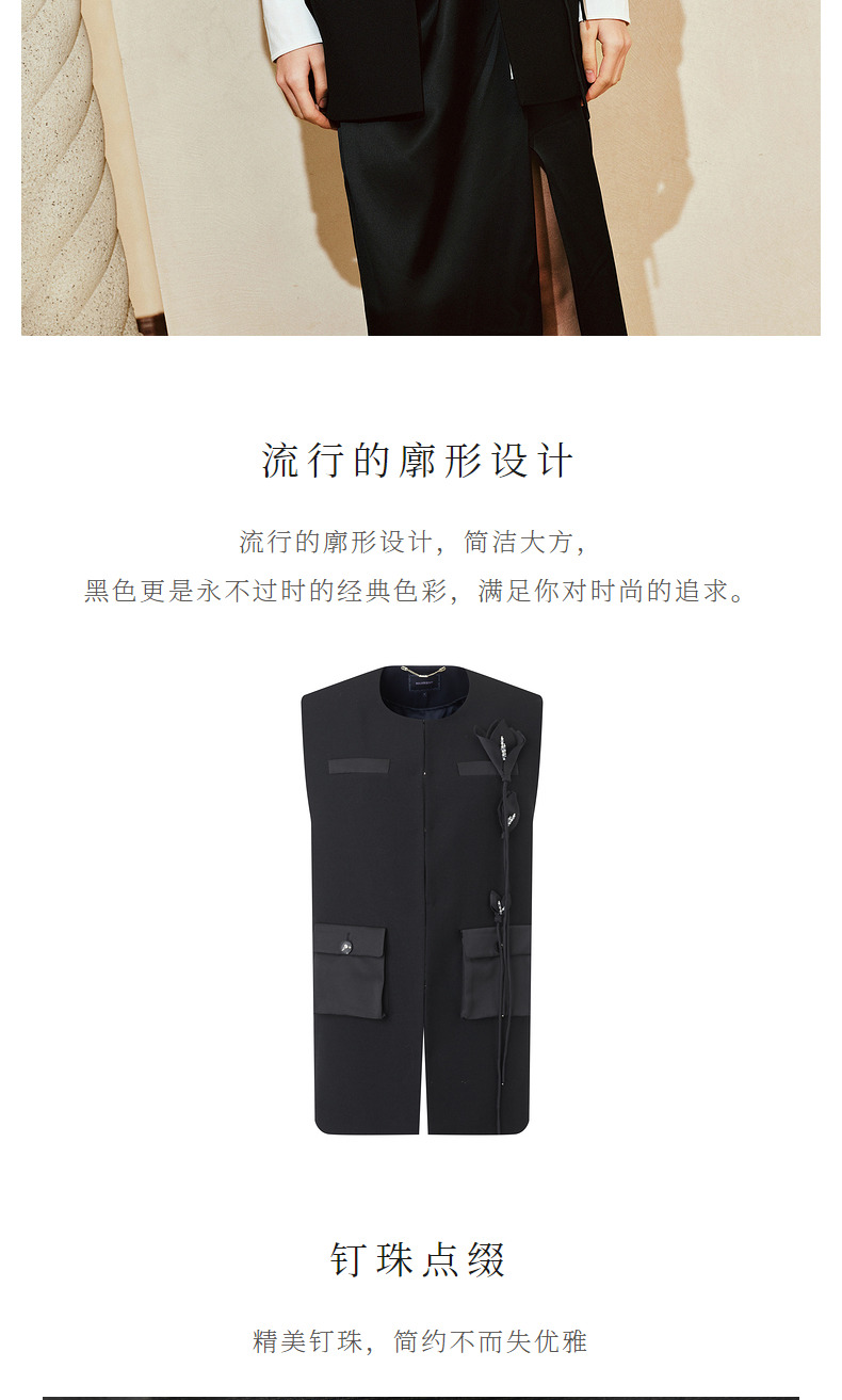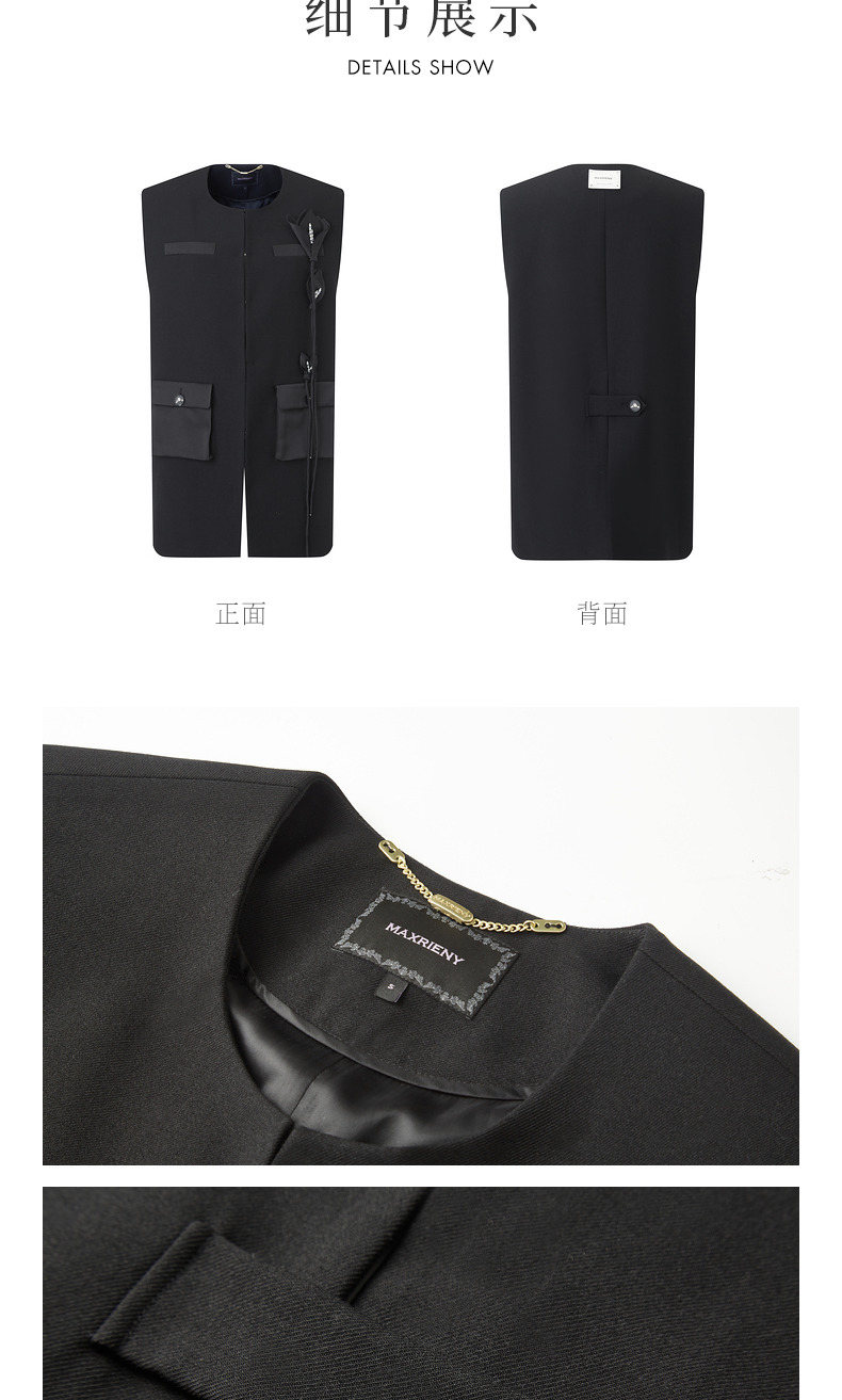 玛克门店发货:MAXRIENY精致复古时尚感廓形马夹背心2024(货号:MC85VE002)