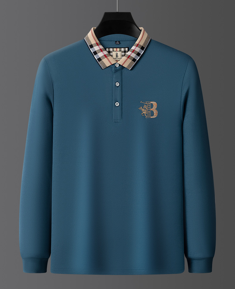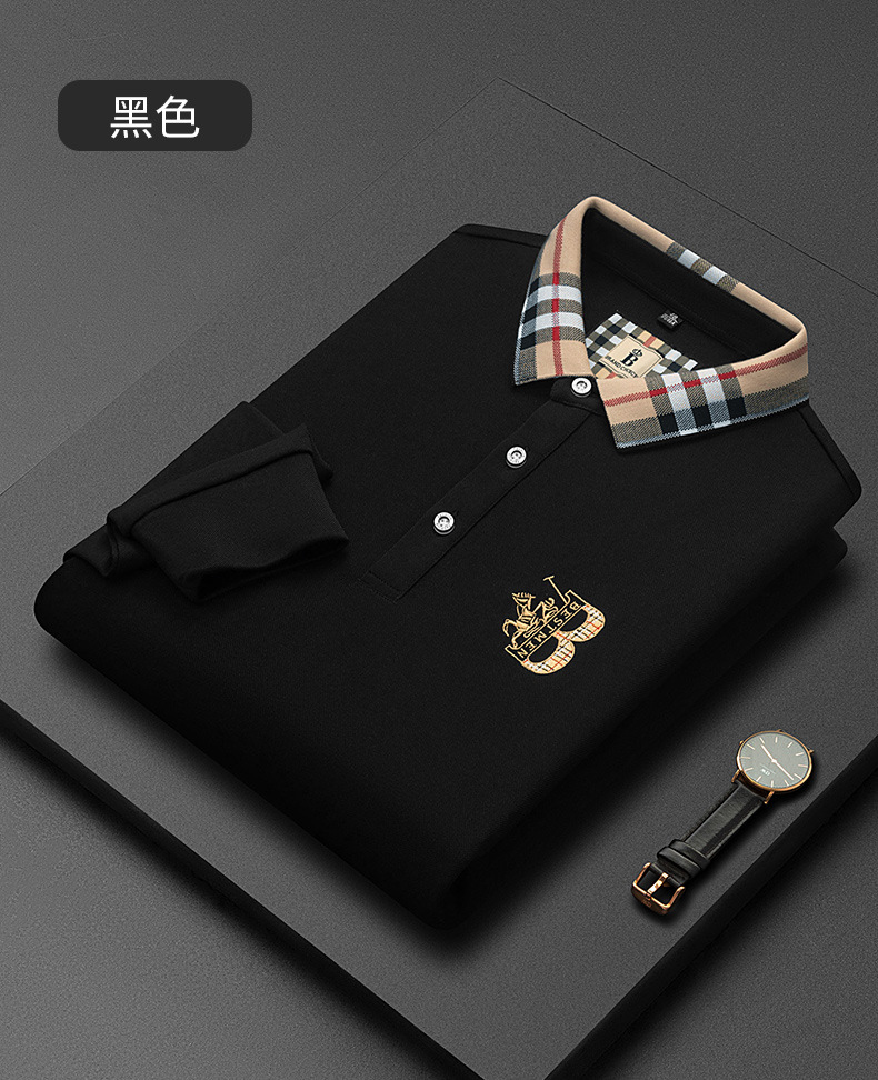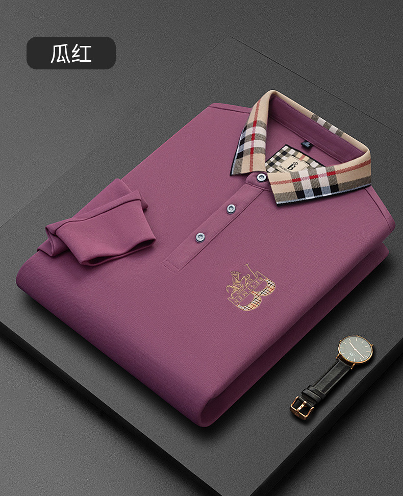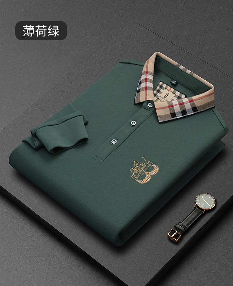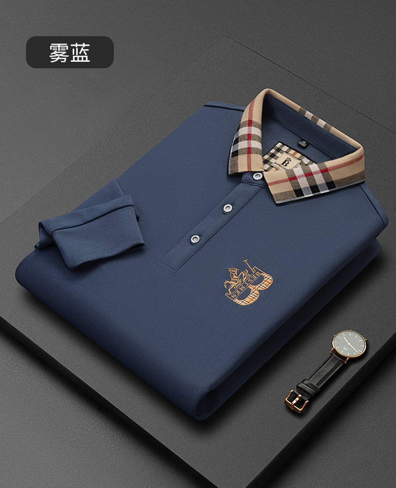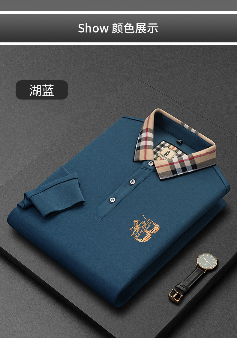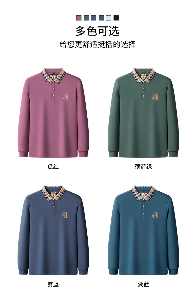 秋季上新!【低调内敛,亲肤舒适!】2025秋冬派森龙中年男士长袖T恤 POLO衫纯色刺绣翻领上衣 爸爸POLO衫-QB