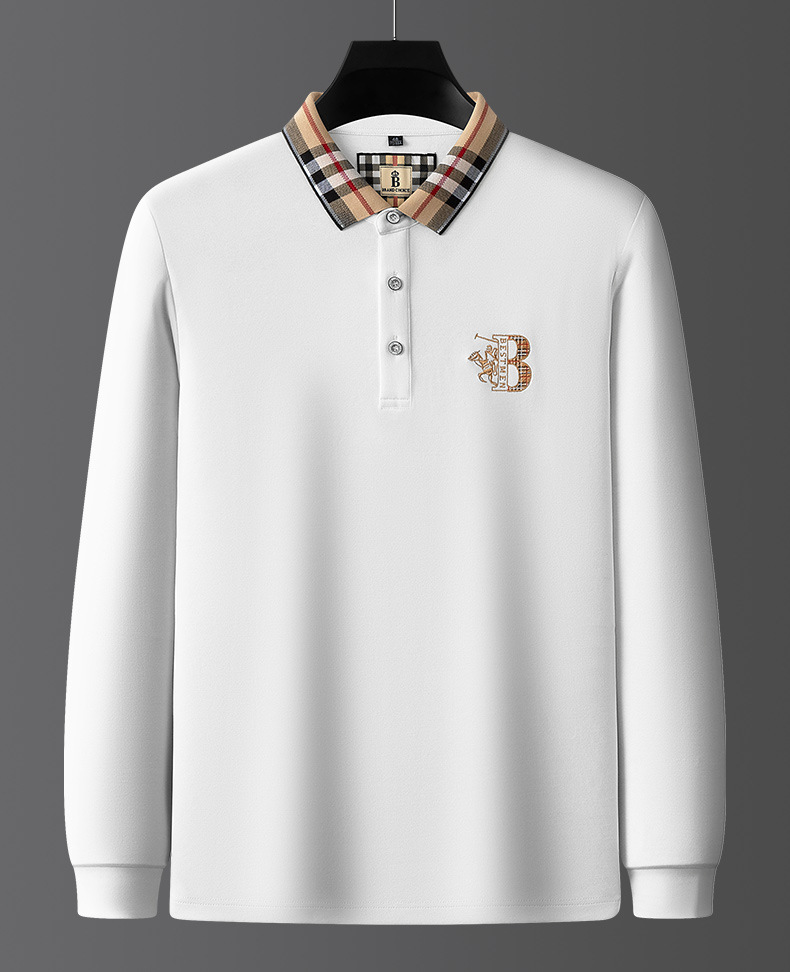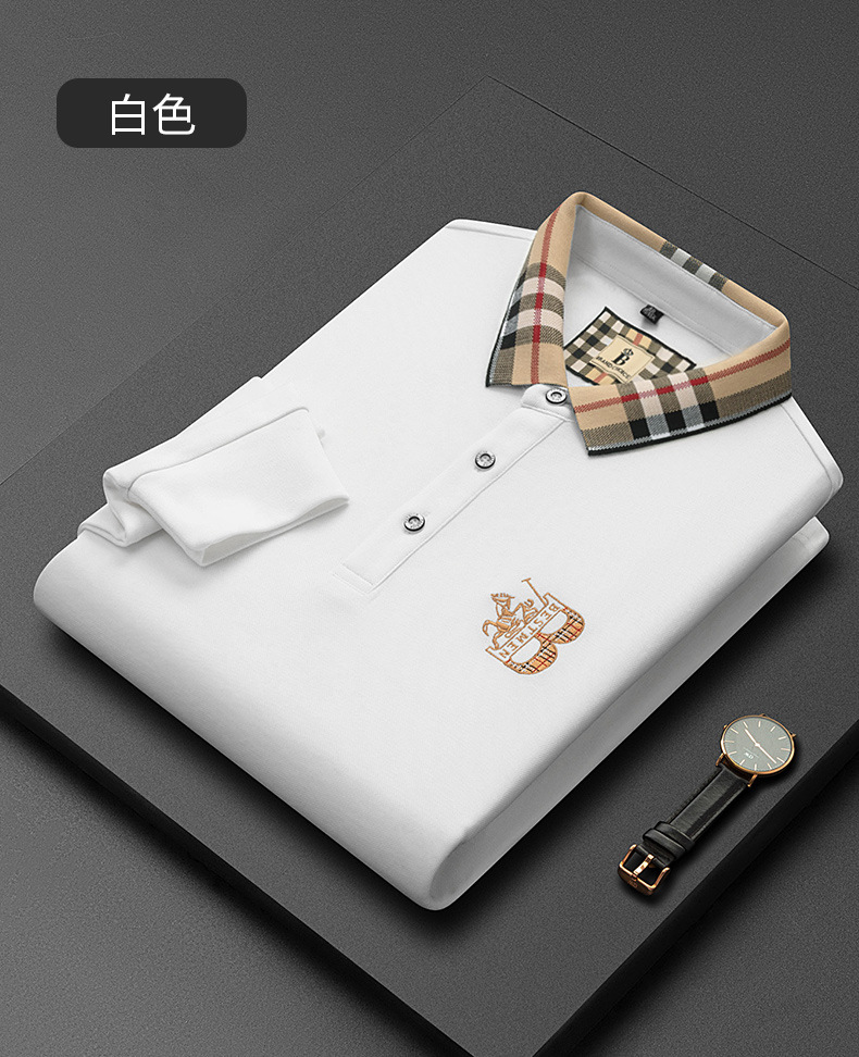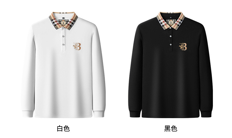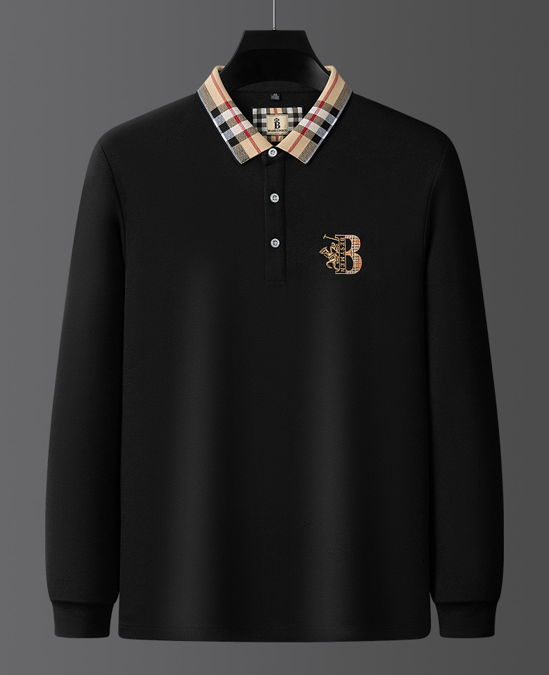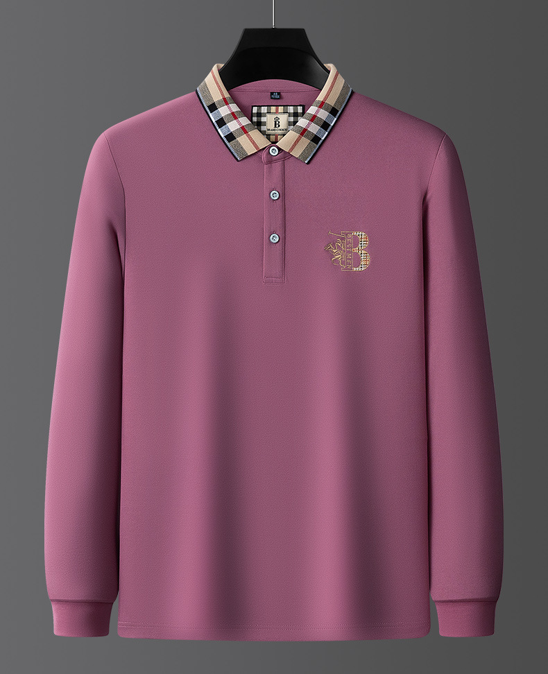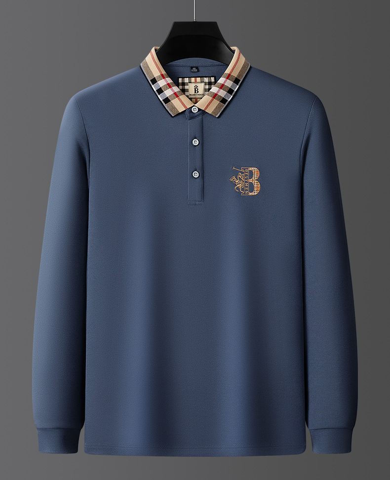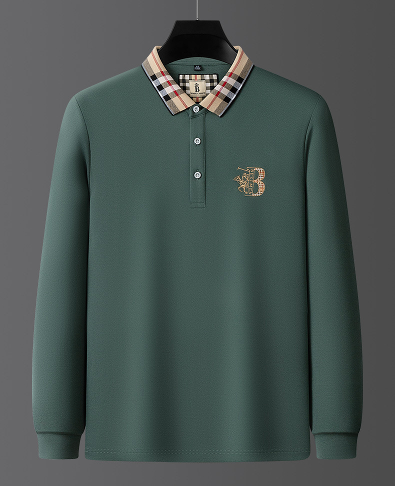 秋季上新!【低调内敛,亲肤舒适!】2025秋冬派森龙中年男士长袖T恤 POLO衫纯色刺绣翻领上衣 爸爸POLO衫-QB