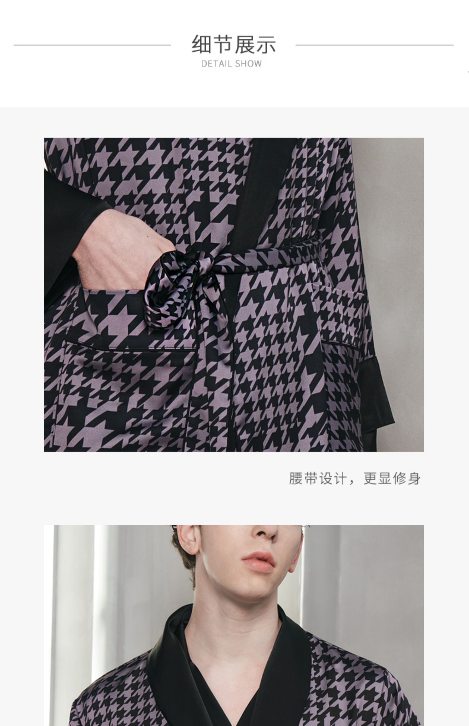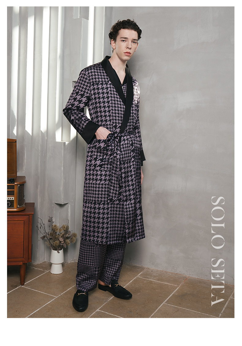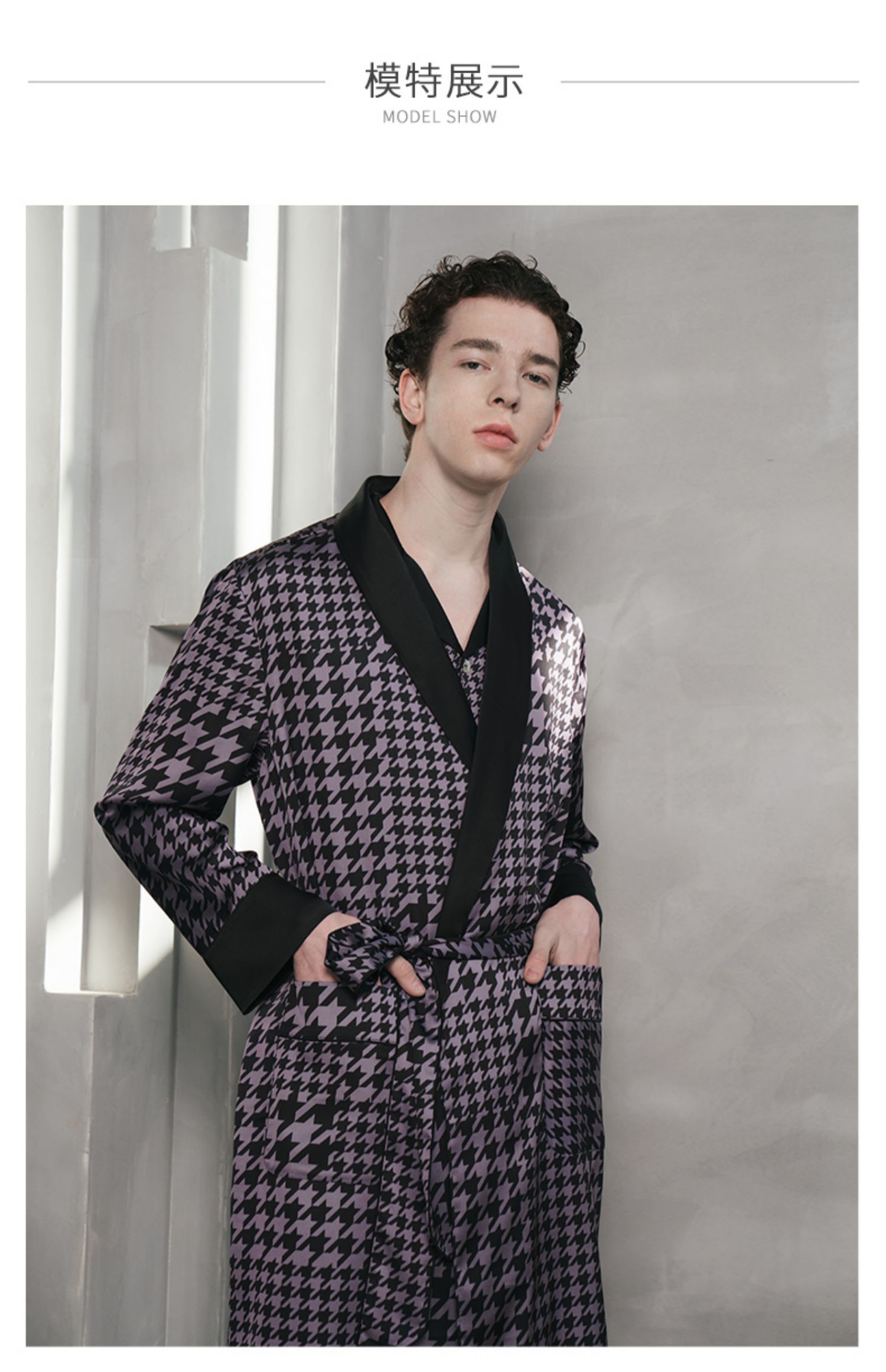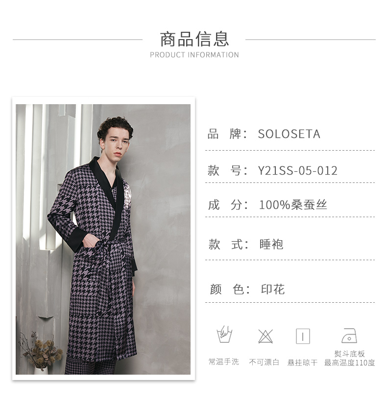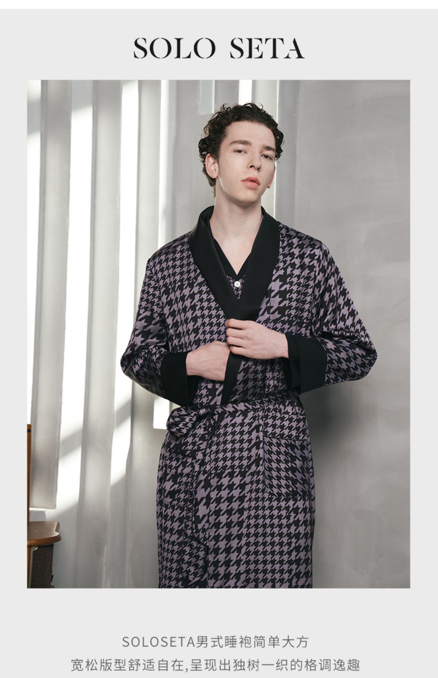 Solo seta22姆米秋冬真丝睡袍男士丝绸家居服中长款晨袍睡衣